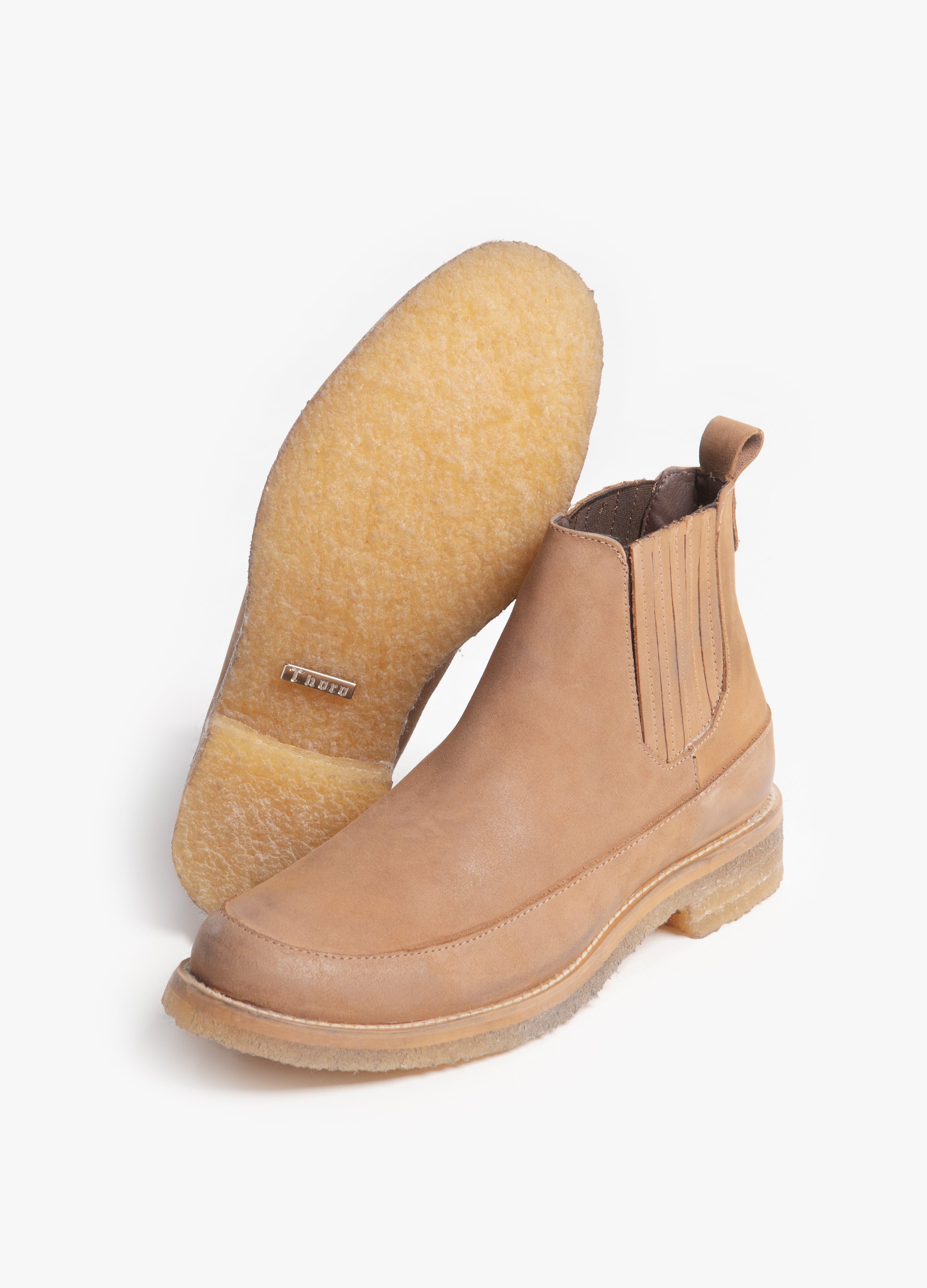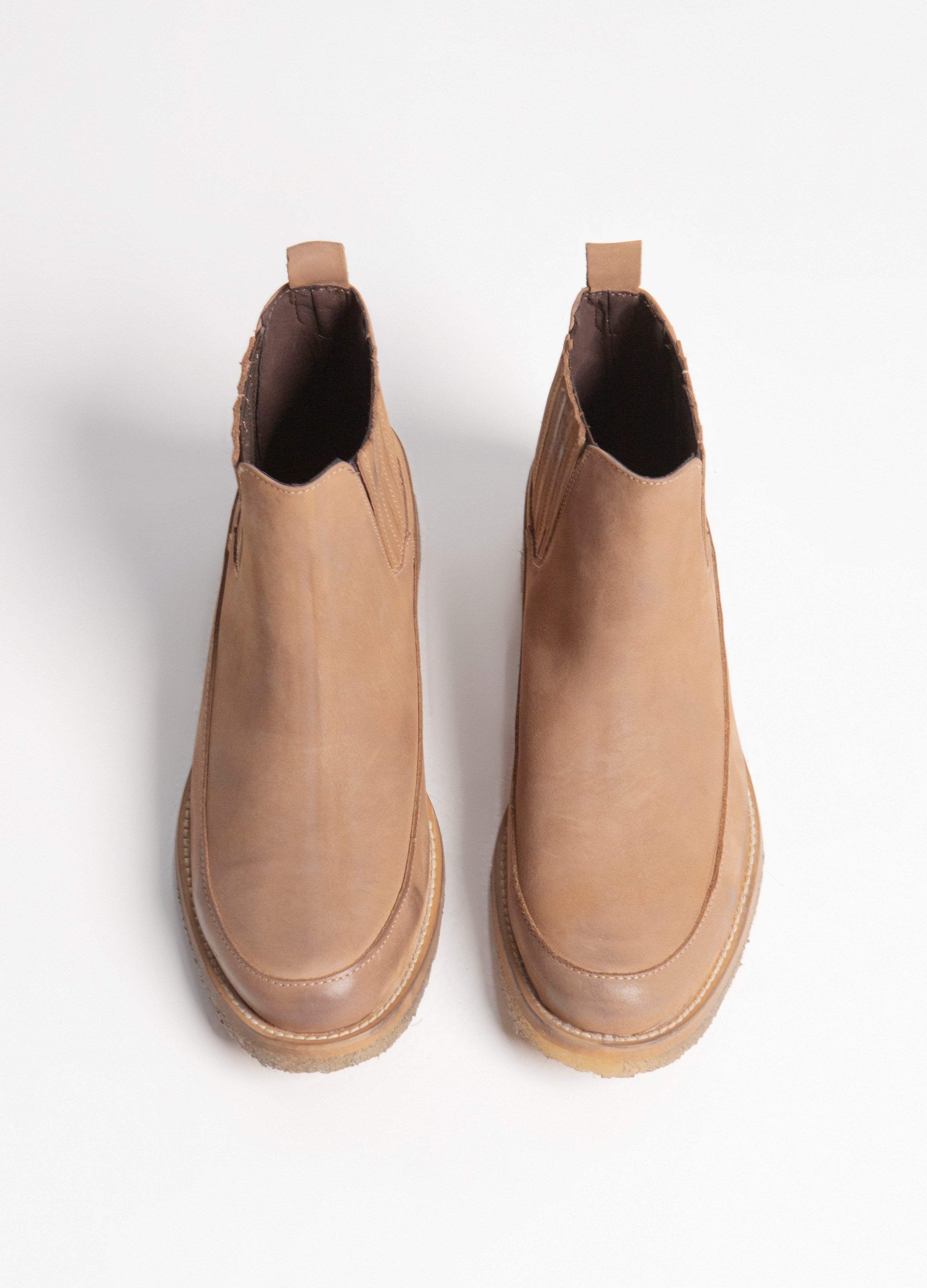 Botín tipo Chelsea parte de la colección Sin City, una pieza que captura la esencia y el contraste del paisaje que rodea a la Ciudad del Pecado: el desierto de Las Vegas.