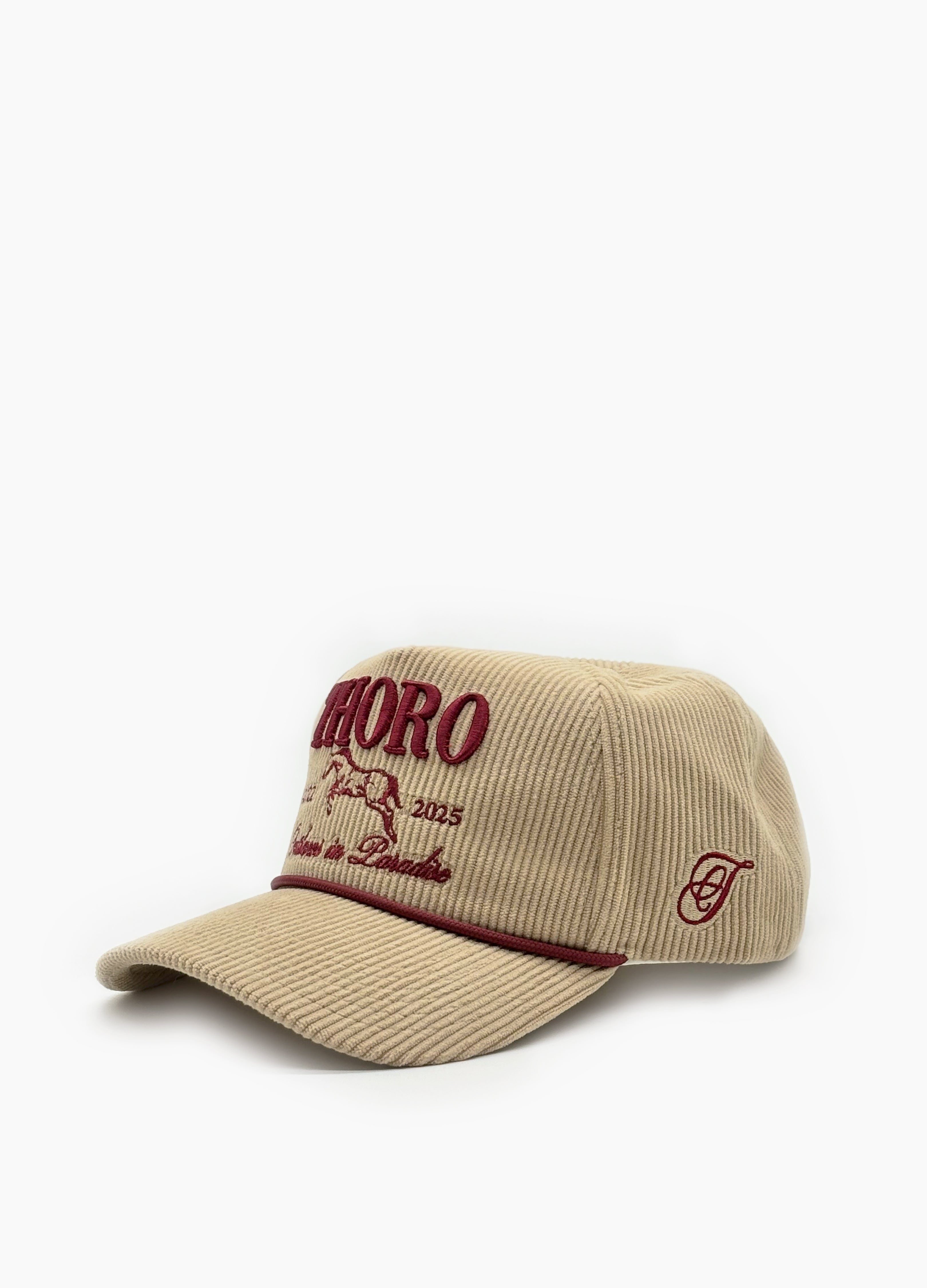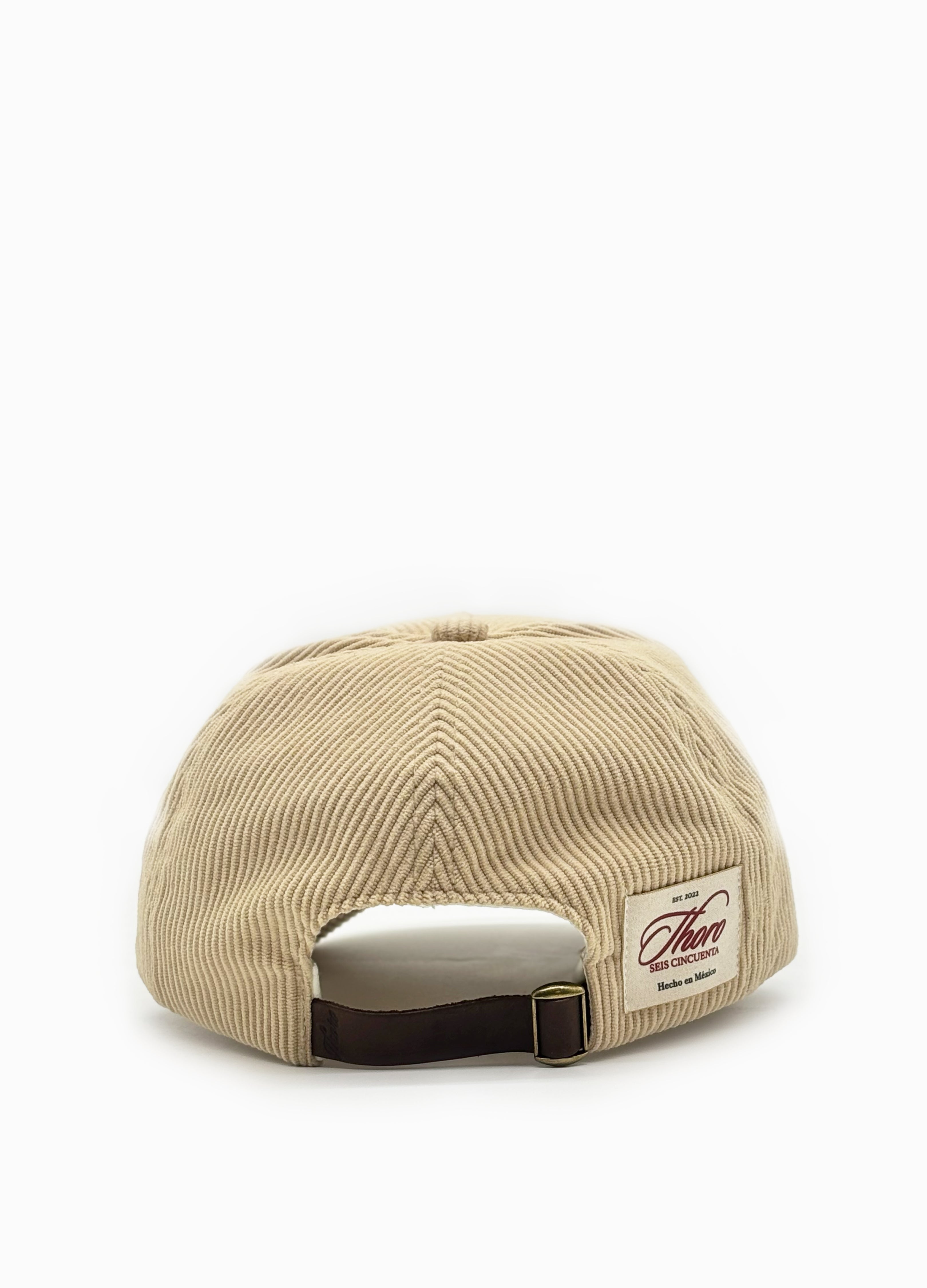 Gorra THORO fabricada en Panilla color beige con forro en algodón y bordado color tinto,