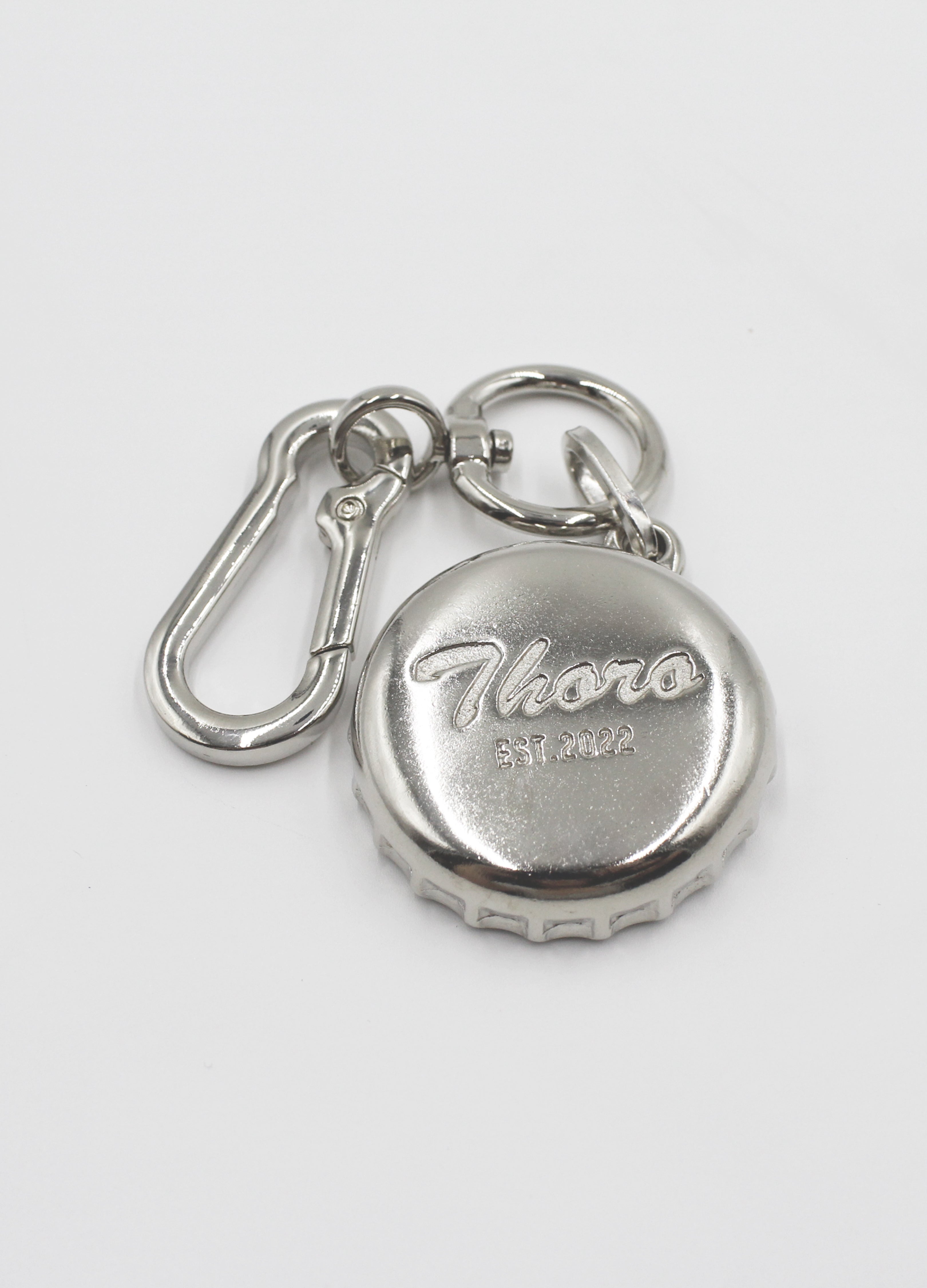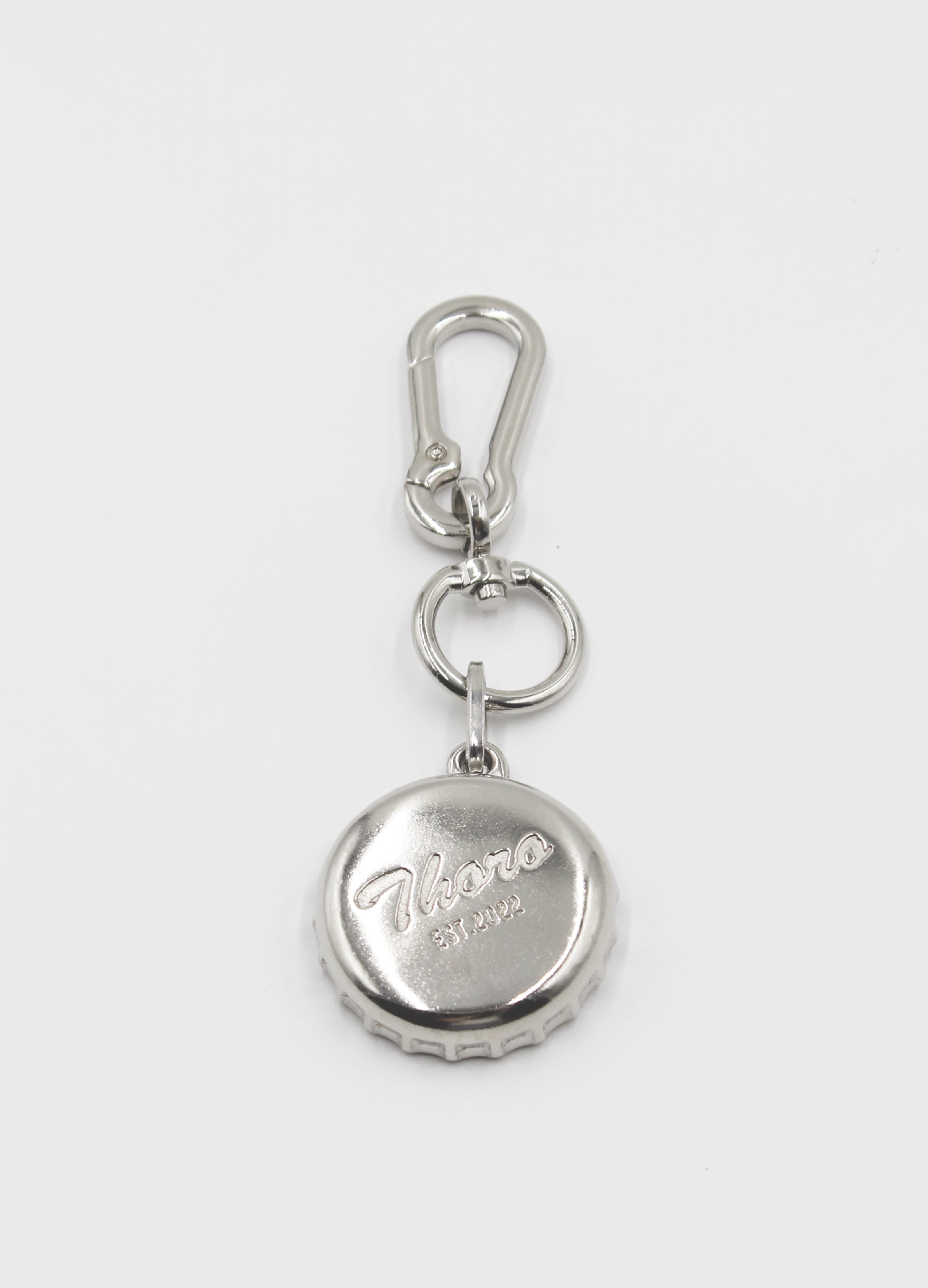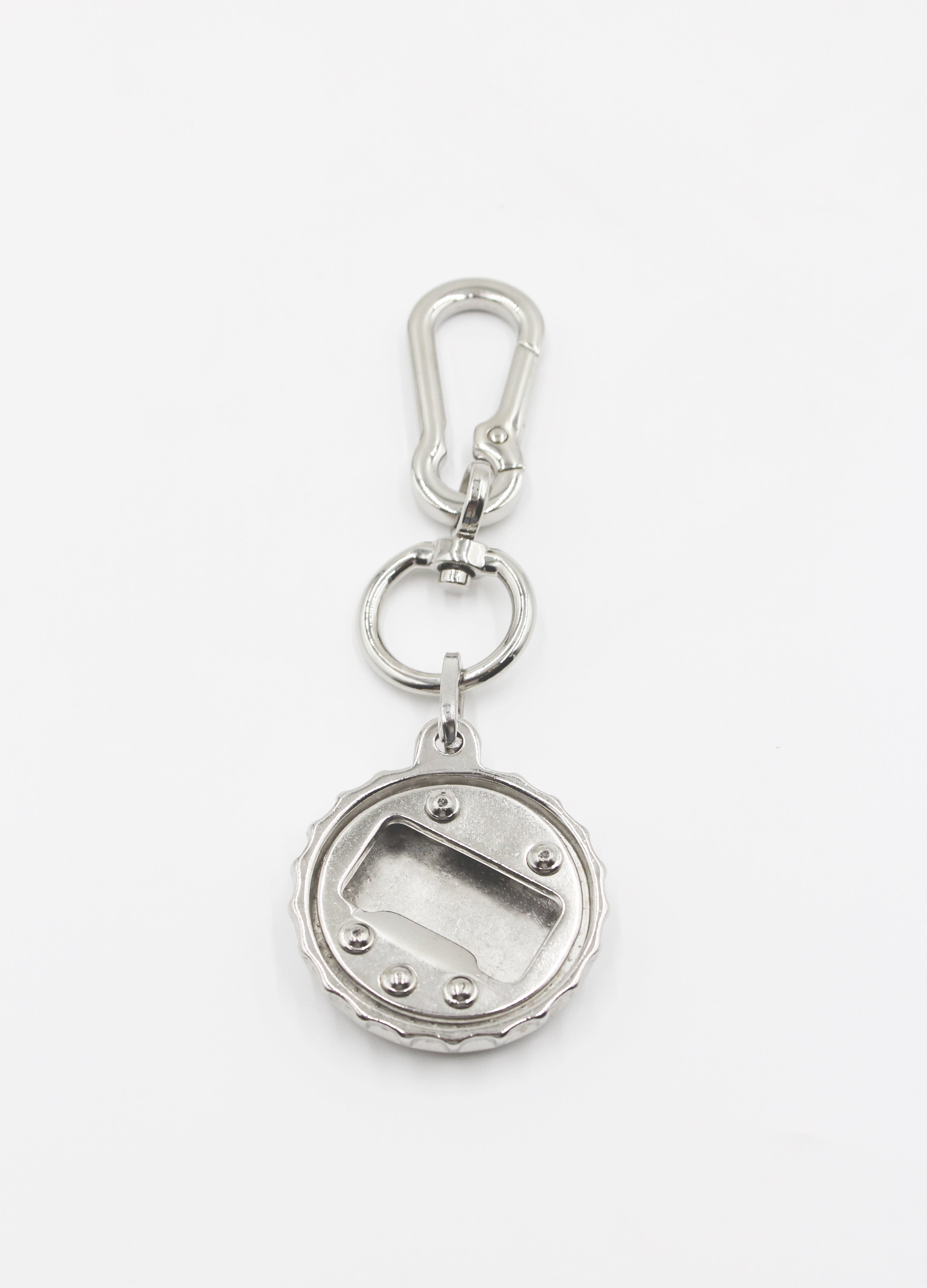 El Llavero Corcholata es un accesorio diseñado para ser tan funcional como llamativo. Está fabricado en metal con un acabado plateado brillante, destacando su diseño en forma de corcholata con un abridor integrado. Incluye un gancho de mosquetón para sujetarse fácilmente a cualquier lugar.