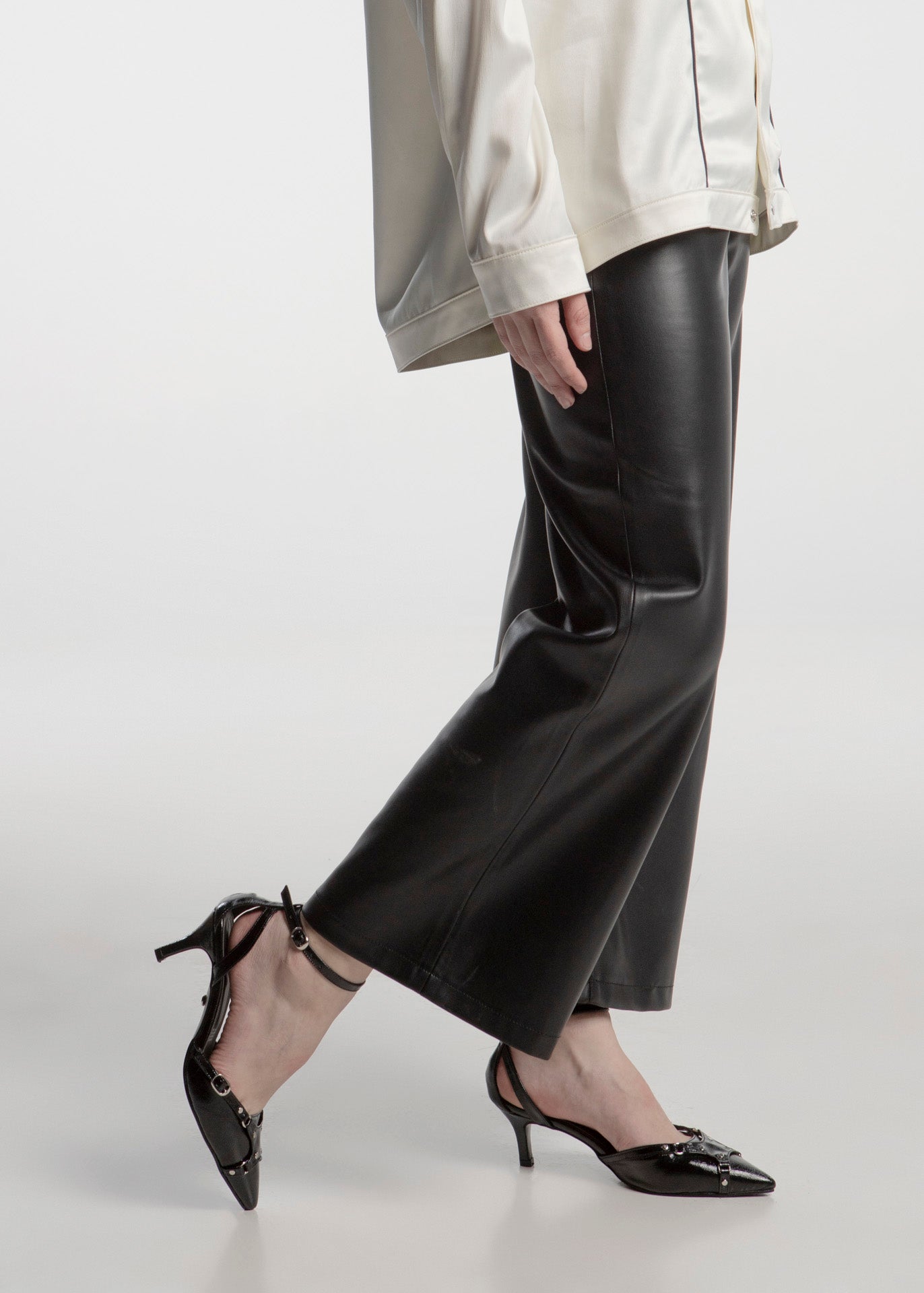 Un tacón clásico con punta fina y tacón que no sobrepasa los 6 cm.