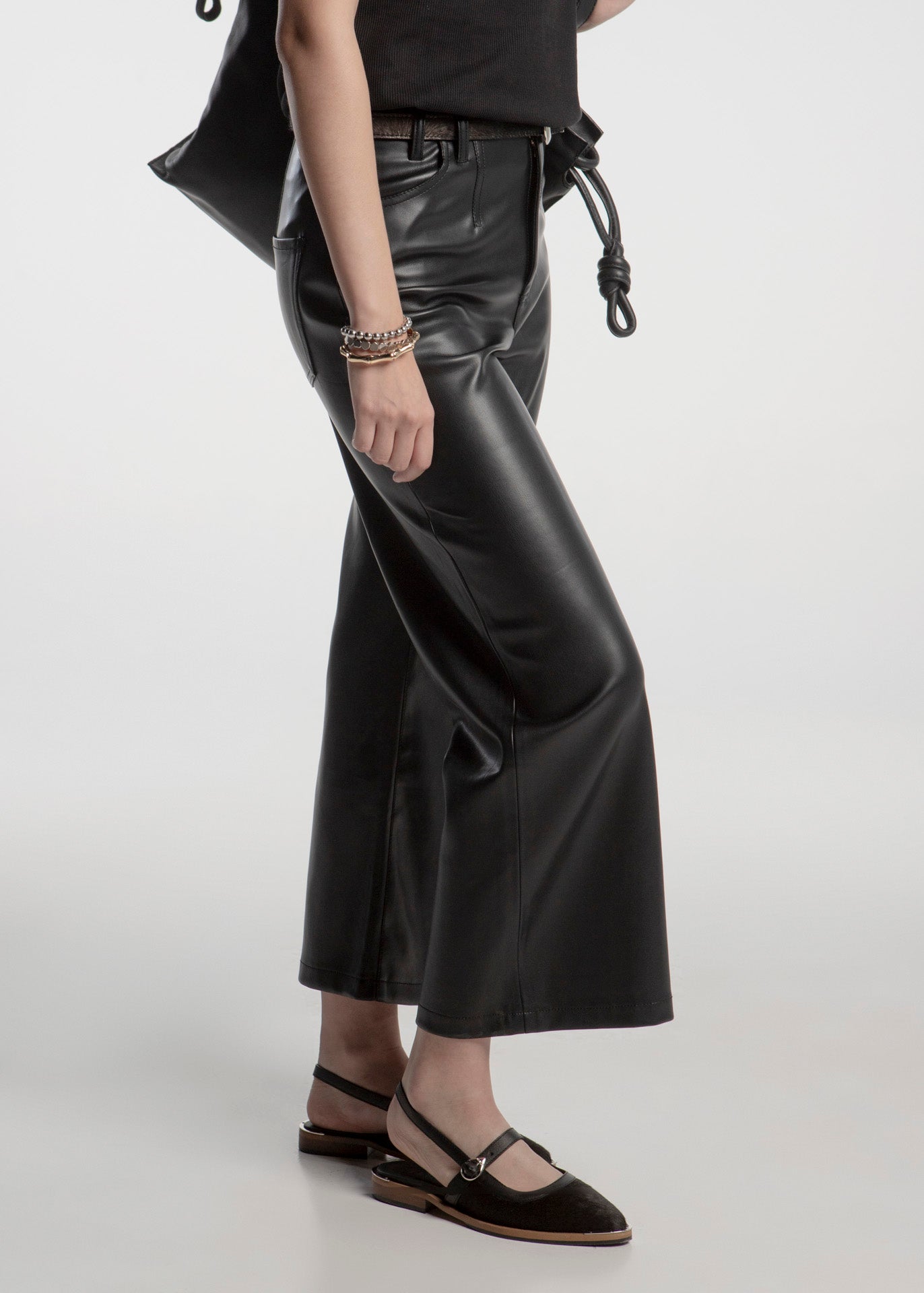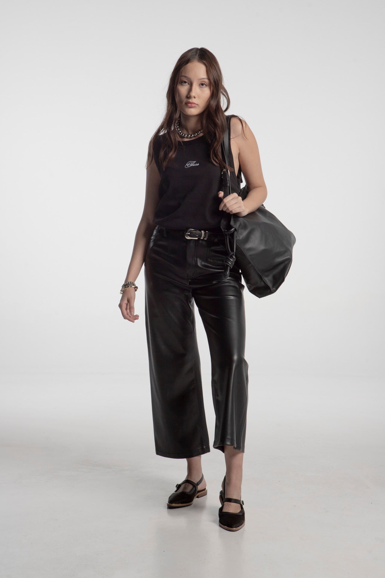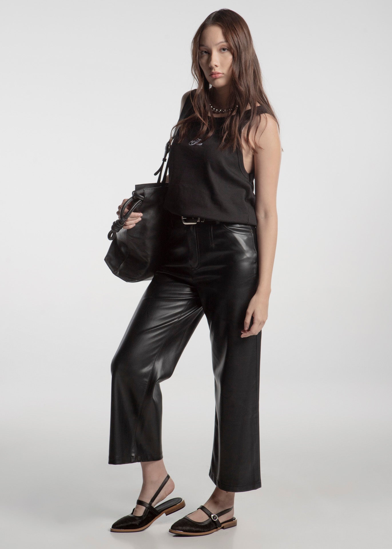 Zapato Flat fabricado en piel con pelaje natural color negro con broches ajustables y suela antiderrapante.