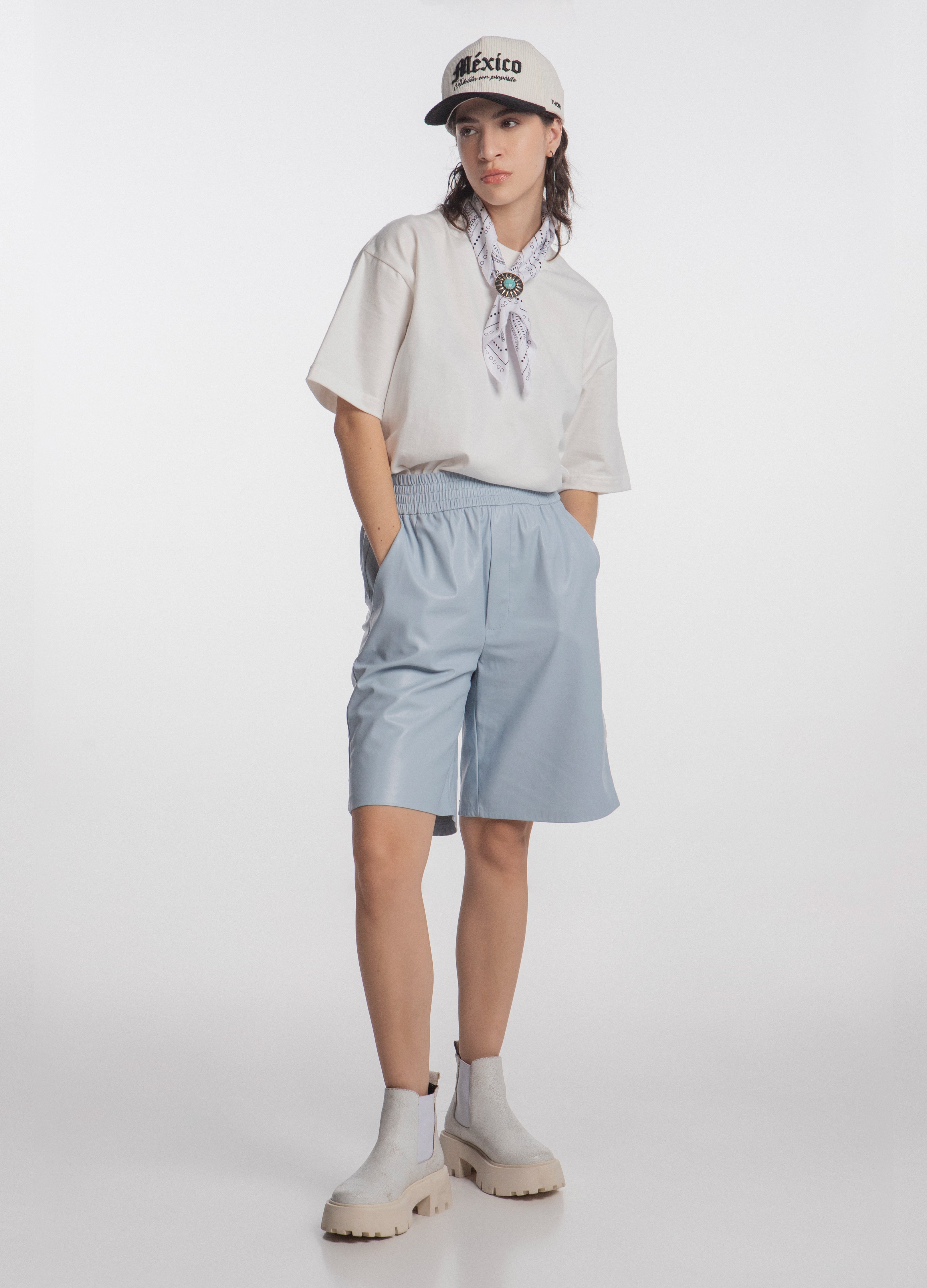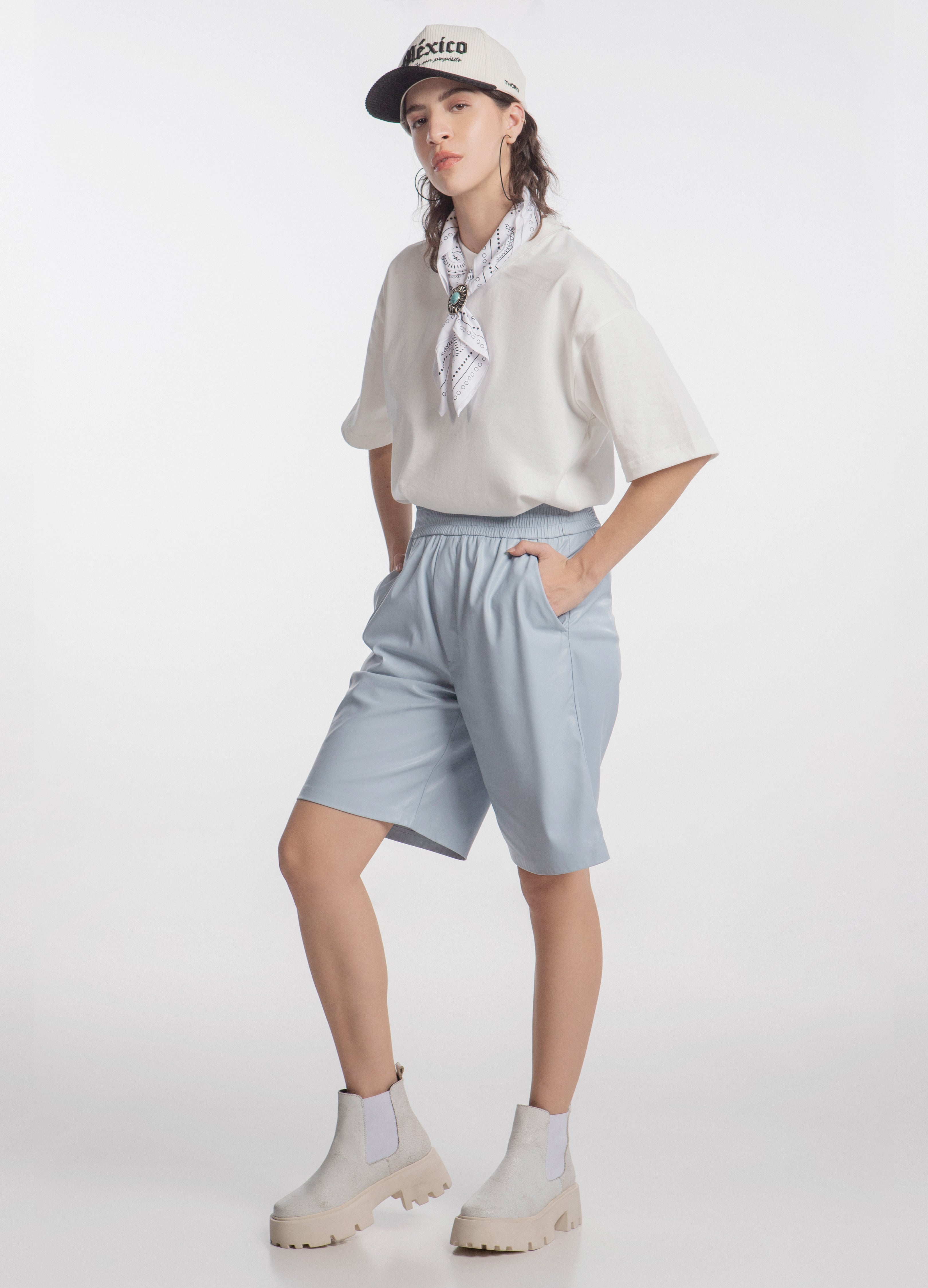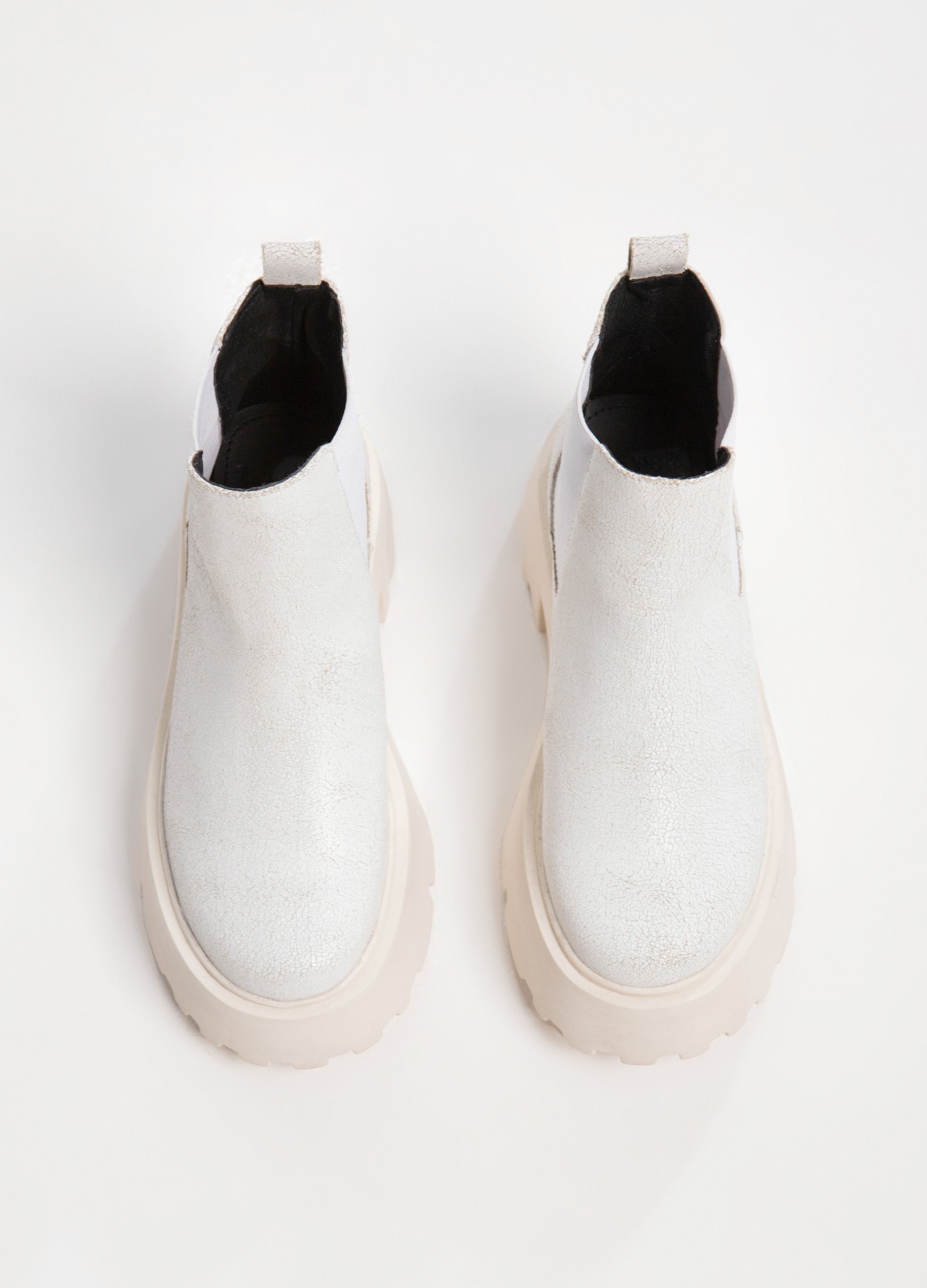 Botas (botines) chelsea fabricadas en piel de res acabado craquelado color blanco con suela gruesa y elasticos laterales.