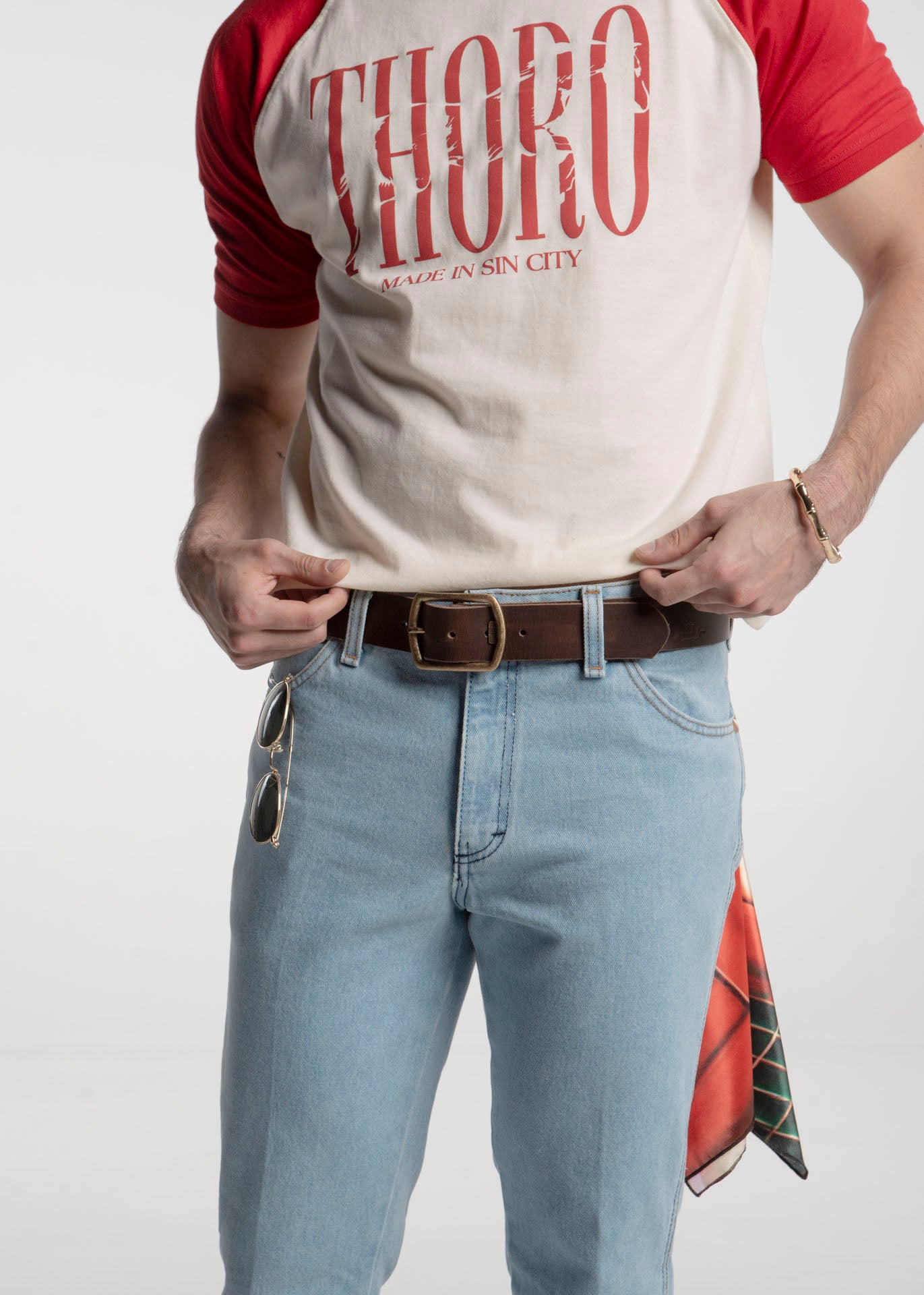 Confeccionado 100% piel, este cinturón luce un tono camel natural que se adapta a cualquier estilo, aportando calidez y autenticidad. Su acabado mate resalta la veta única de la piel, haciendo de cada pieza algo irrepetible.