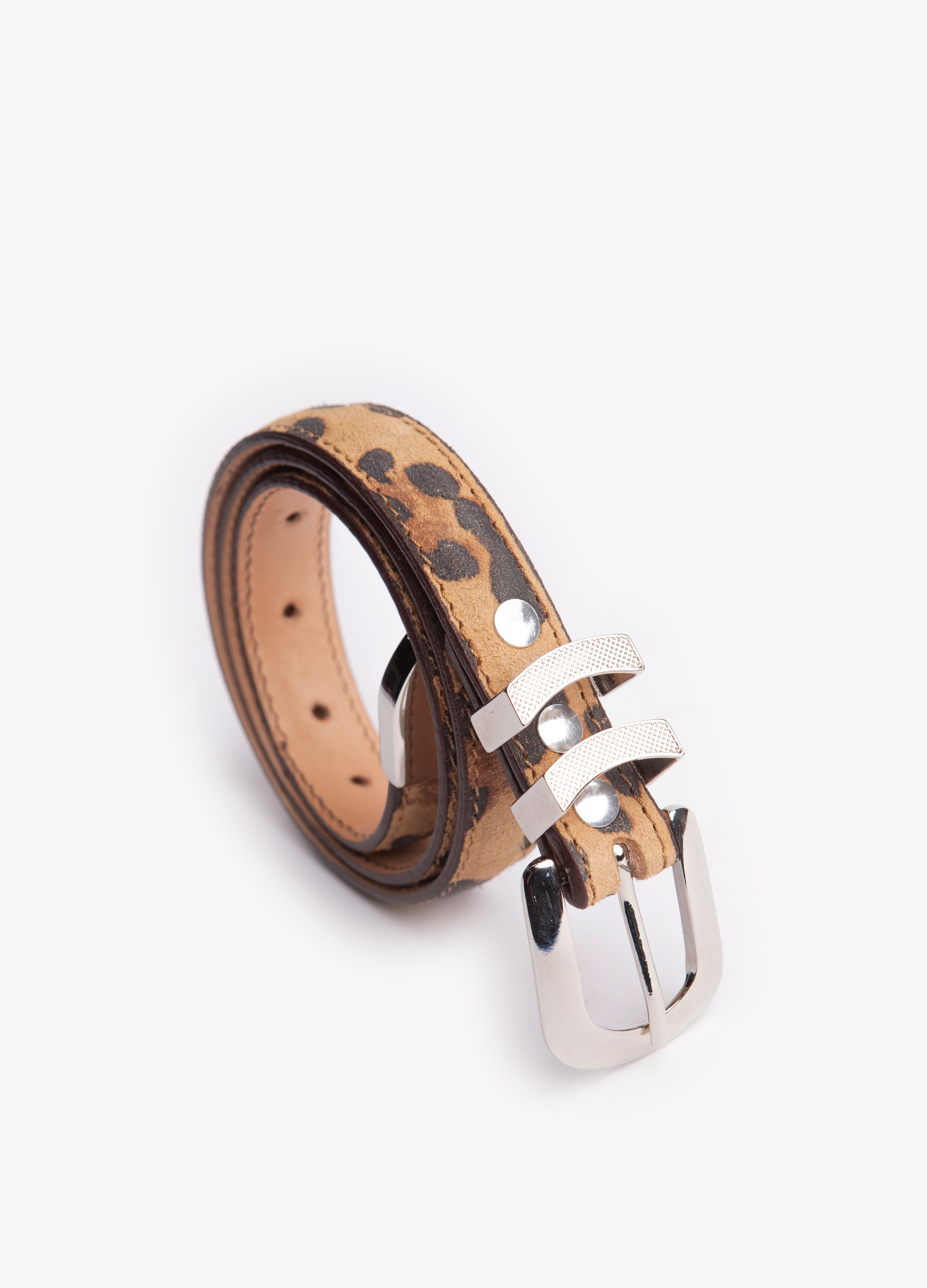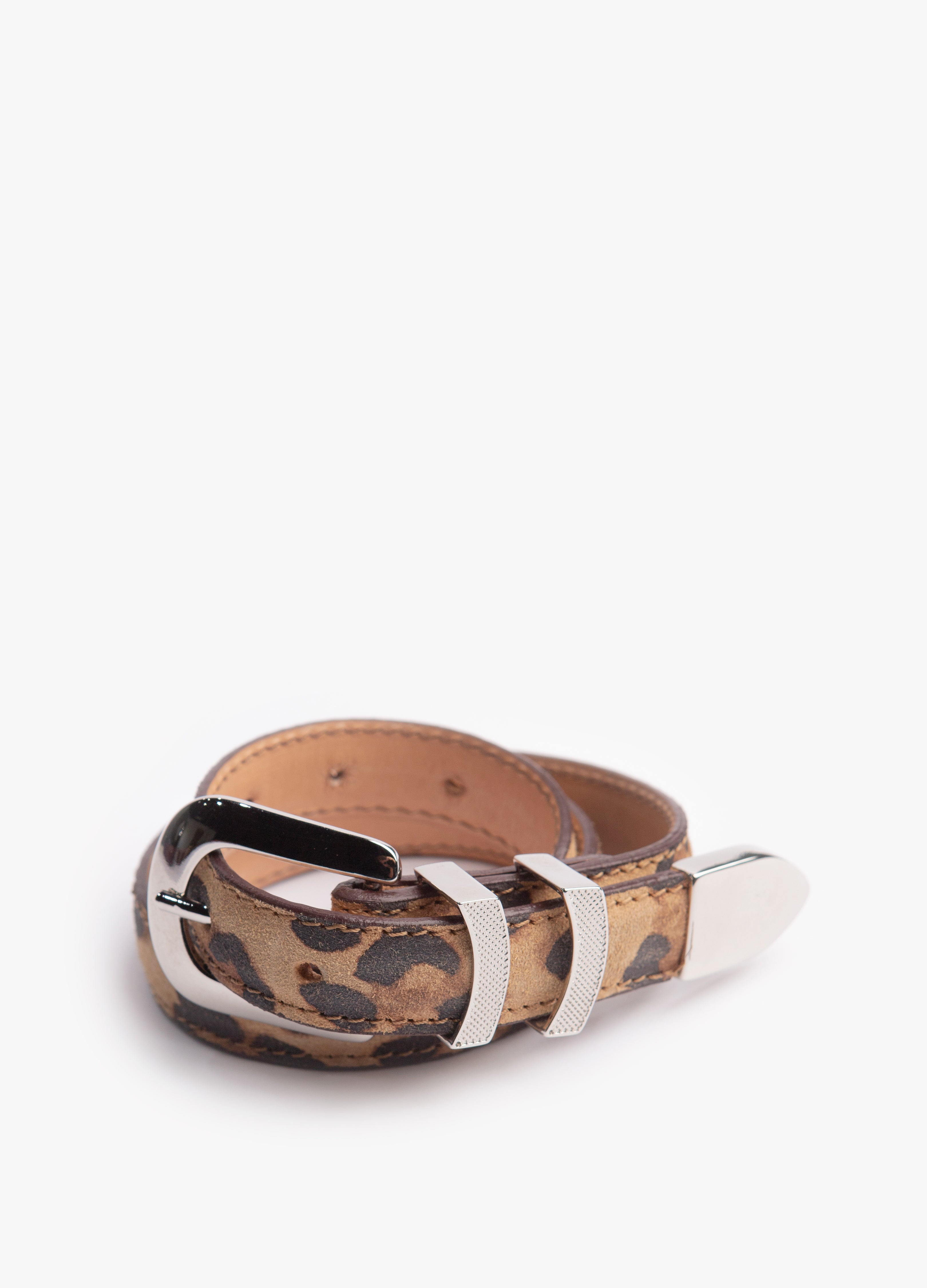 Este cinturón exclusivo está confeccionado en piel genuina de res, con diseño de animal print lo que le confiere una textura única. Su diseño delgado y elegante lo convierte en un accesorio versátil, ideal tanto para atuendos casuales como para ocasiones formales donde se busca proyectar autenticidad y estilo refinado.