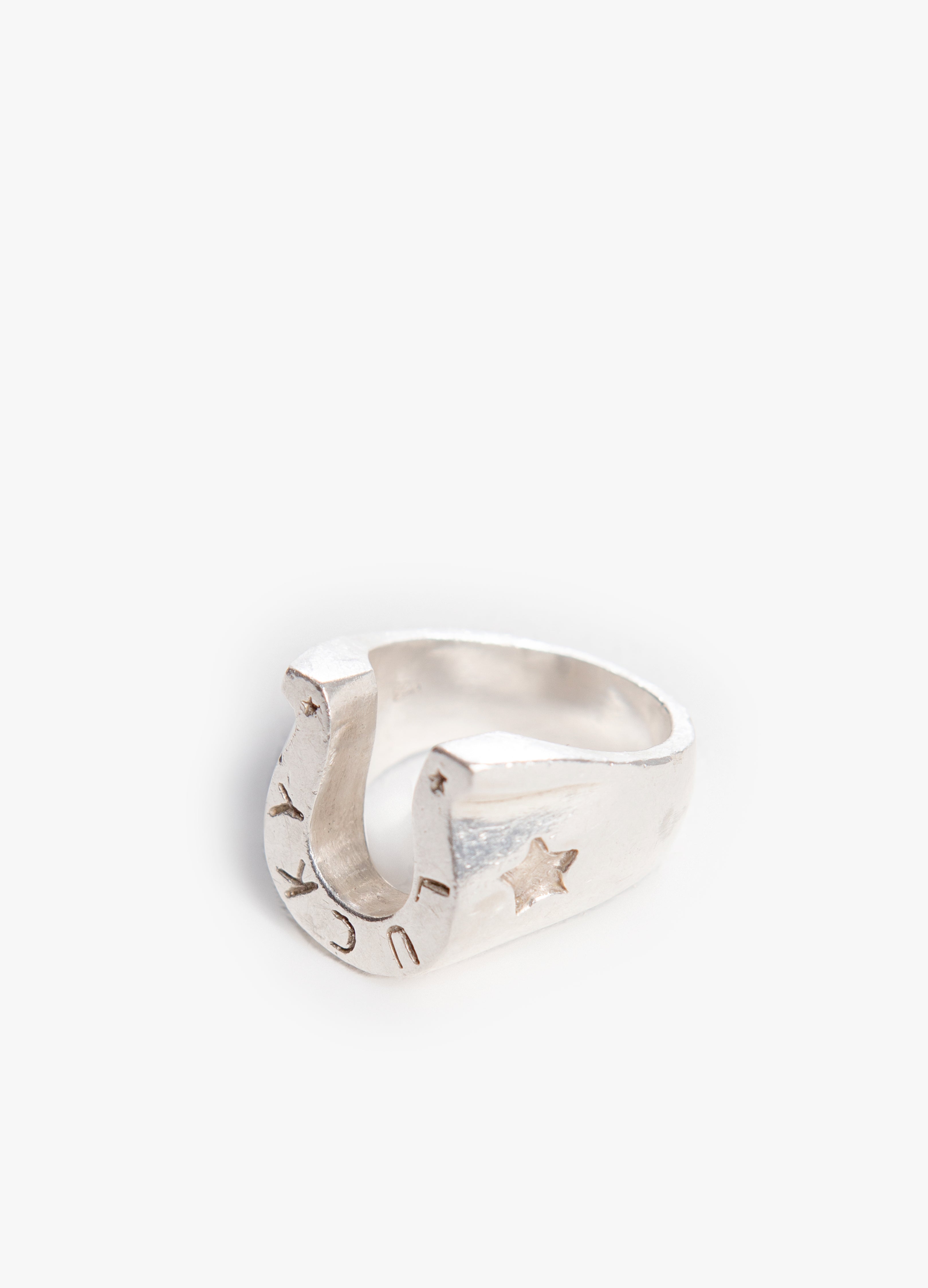 Este anillo robusto y elegante está fabricado en plata esterlina .925, reconocida por su durabilidad, brillo y resistencia a la corrosión. Su diseño en forma de herradura, un grabado profundo con el texto “Lucky”,aporta carácter artesanal al diseño.