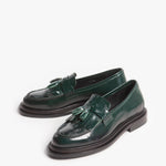 El Bugsy Loafer Verde captura el lujo de los casinos y la historia de Las Vegas. Este zapato está hecho en piel verde esmeralda brillante, un color que evoca el tapete de las mesas de juego y la promesa de fortuna. Su diseño clásico de loafer, con flecos y antifaz, ofrece un estilo elegante y bien definido. Montado sobre una suela gruesa y oscura para un toque moderno, este calzado es ideal para quien busca un toque de color distintivo y un lujo notable, llevando la esencia y el encanto de la Ciudad del Pecado.