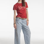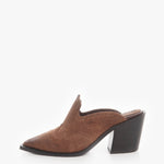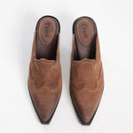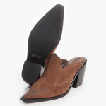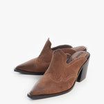 Suecos suajados con estilo de bota vaquera, fabricados en piel gamuza color ladrillo