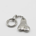 El llavero "Los que te Faltan" es un accesorio provocador diseñado para hacer una declaración con humor y carácter. Está fabricado en metal con un acabado plateado pulido y brillante. El diseño representa una forma anatómica con gran detalle, colgada de una cadena y un aro para llaves. Es una pieza única para quienes buscan un accesorio llamativo, con un toque irreverente y una personalidad fuerte.