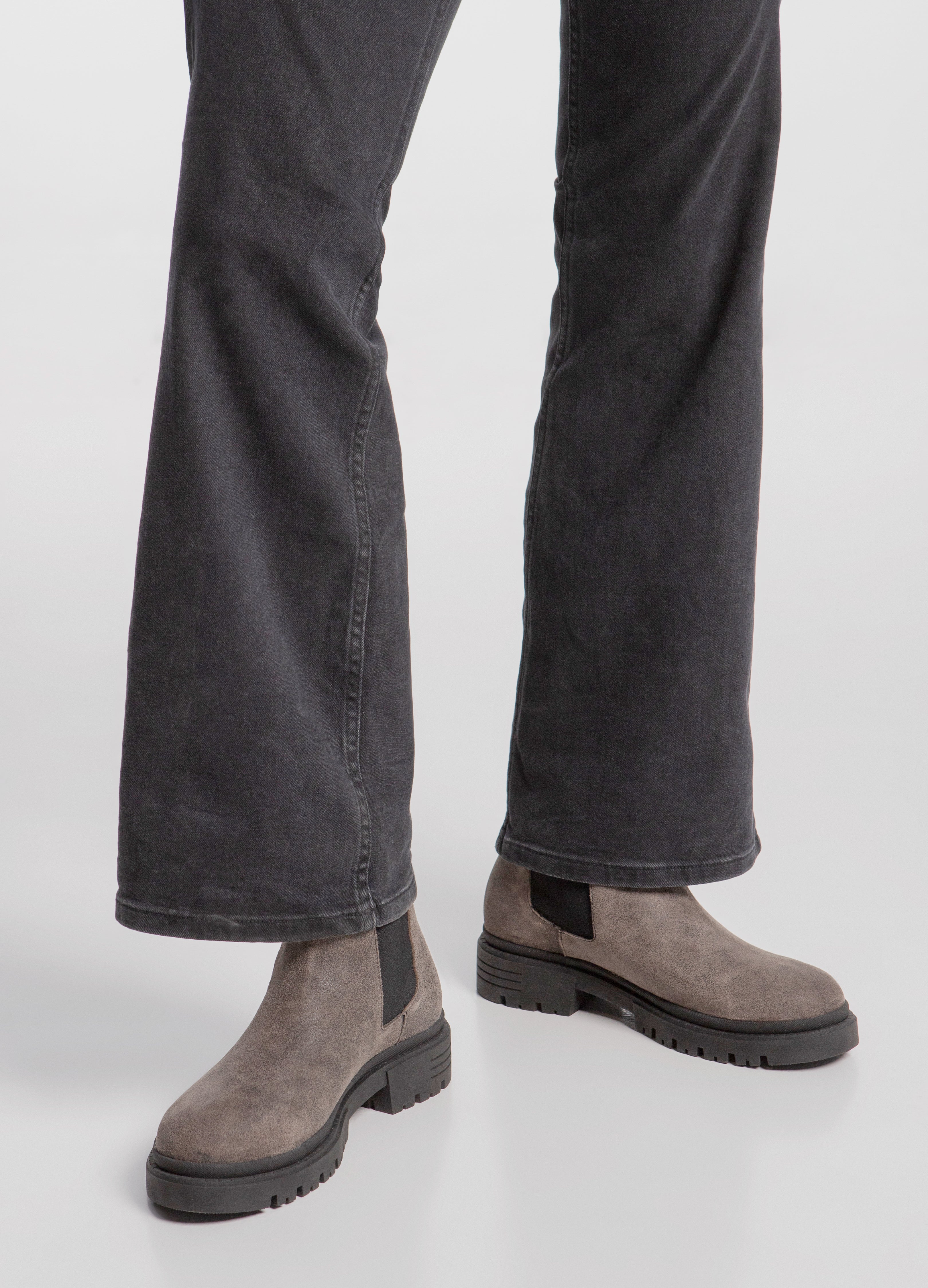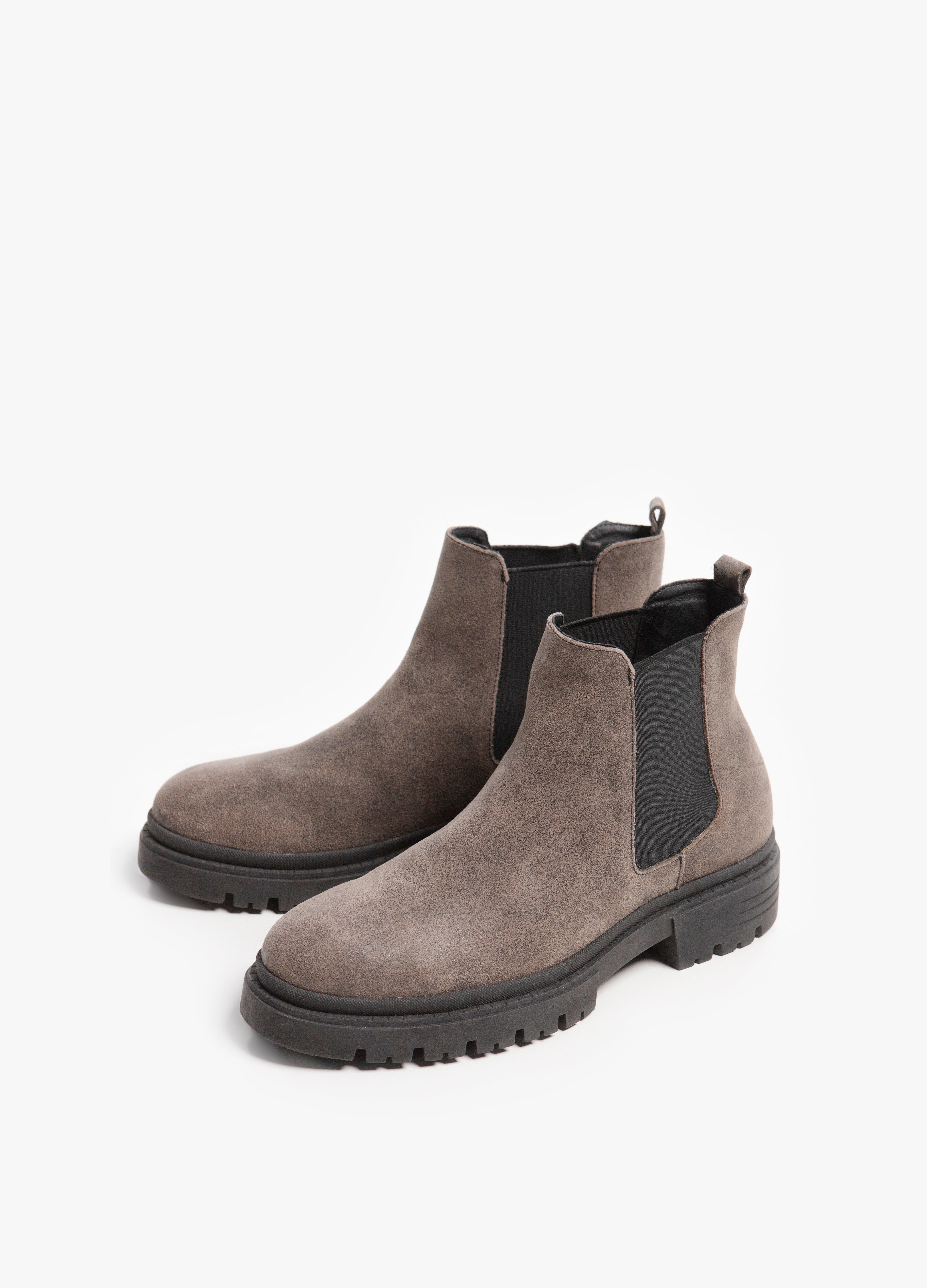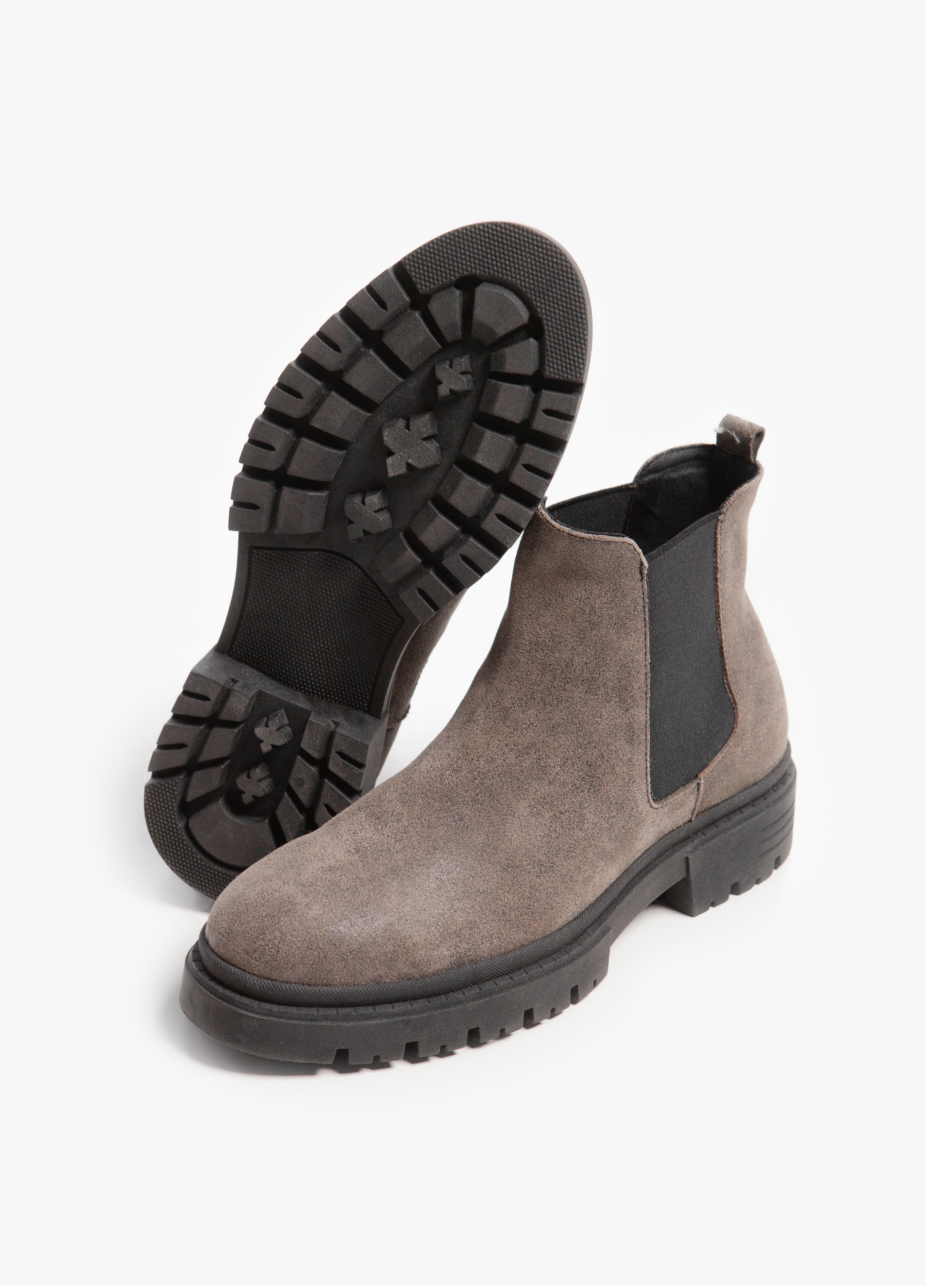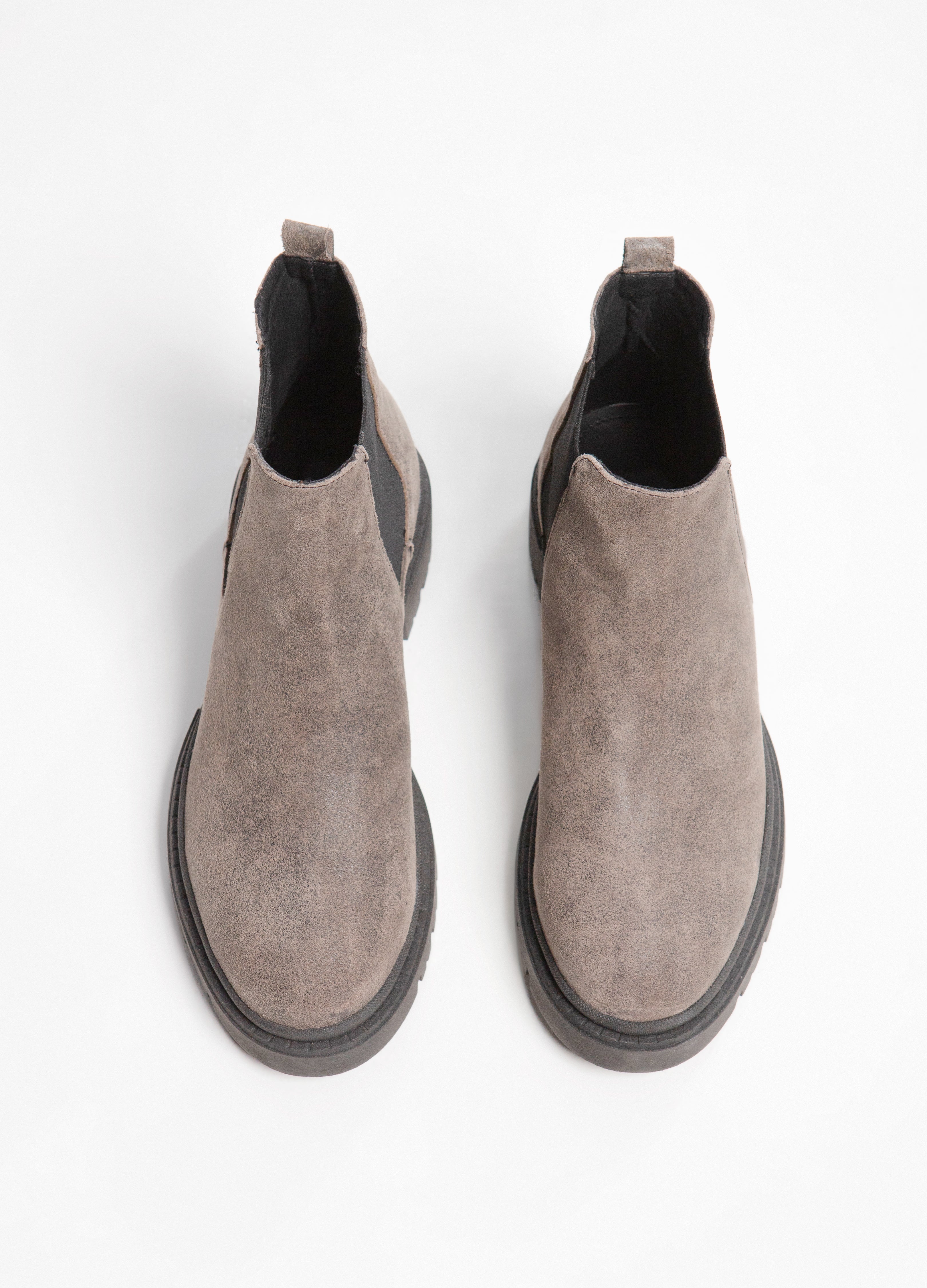Chelsea boots made of grey cowhide with a suede finish, thick sole and side elastics.