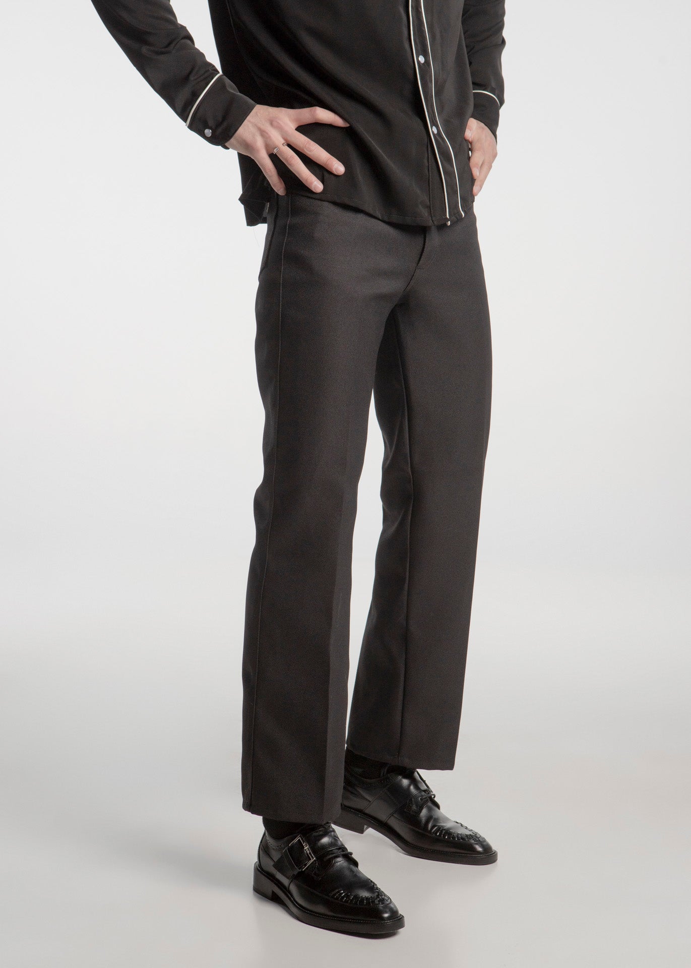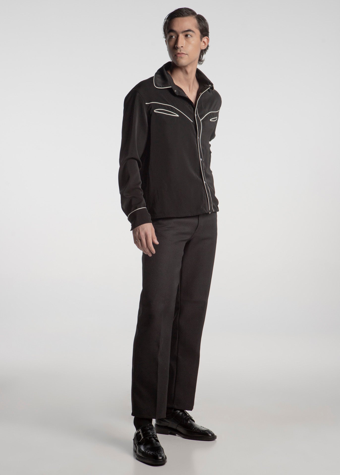 El Gatsby Negro es un zapato que trae el glamour de los años 80 a la opulencia moderna de Las Vegas. Confeccionado en piel negra de acabado impecable, este modelo destaca por el detalle trenzado en la puntera y la gran hebilla lateralque le da un toque distintivo. Su diseño combina la formalidad Brogue con un cierre de monje, creando una pieza única. Es el calzado perfecto para quien busca una elegancia profunda y con carácter en el casino o en cualquier evento de etiqueta.