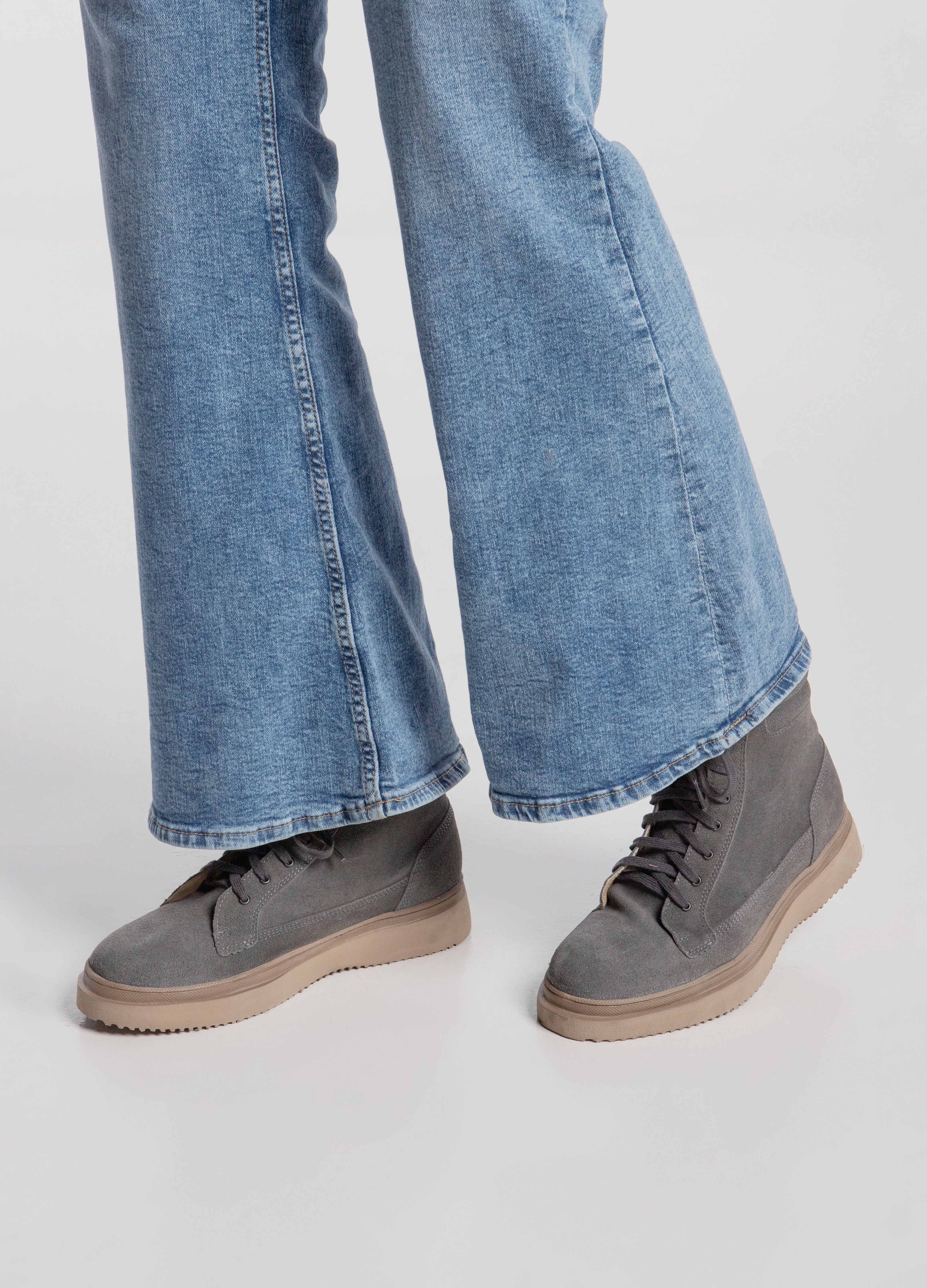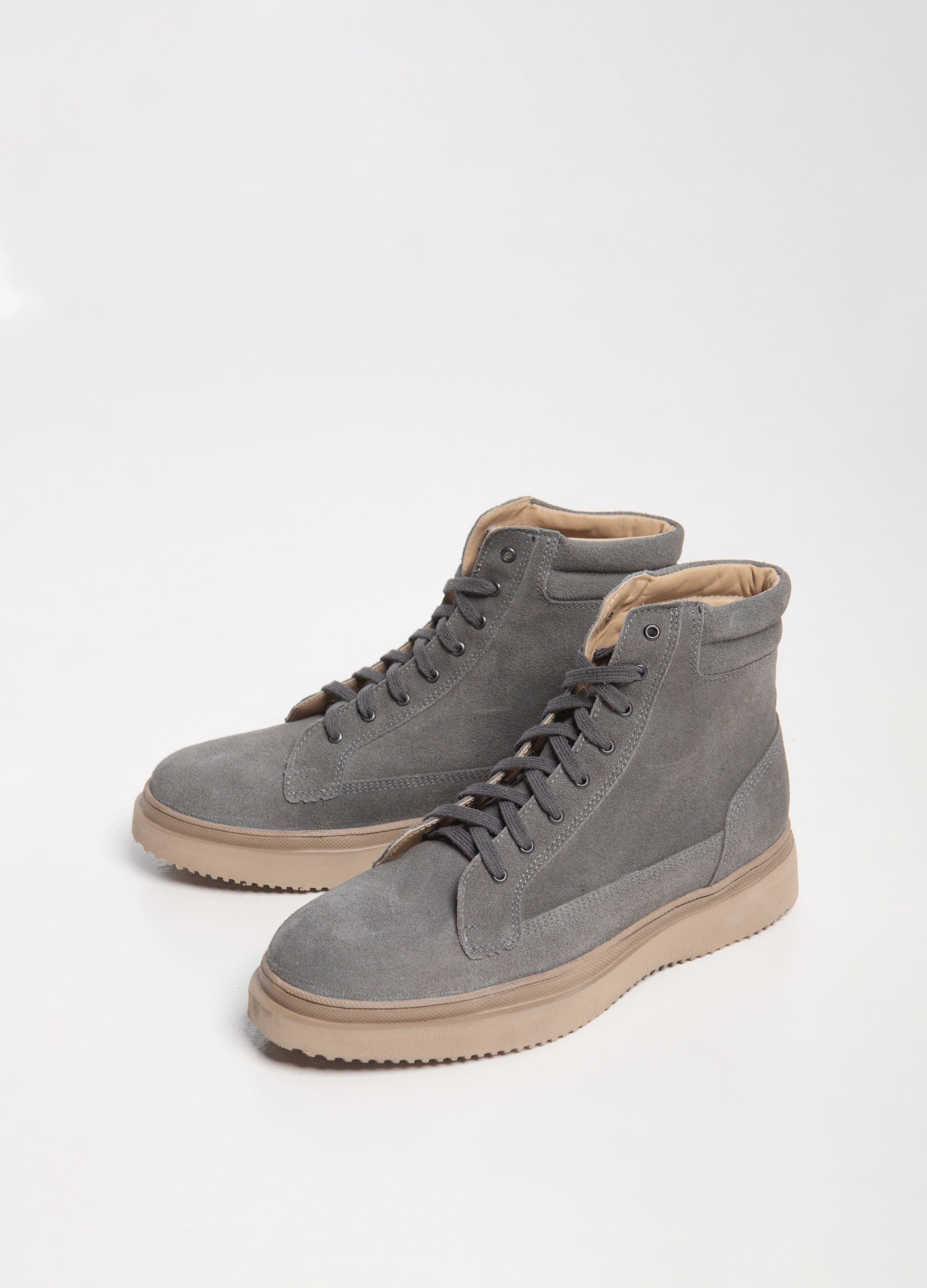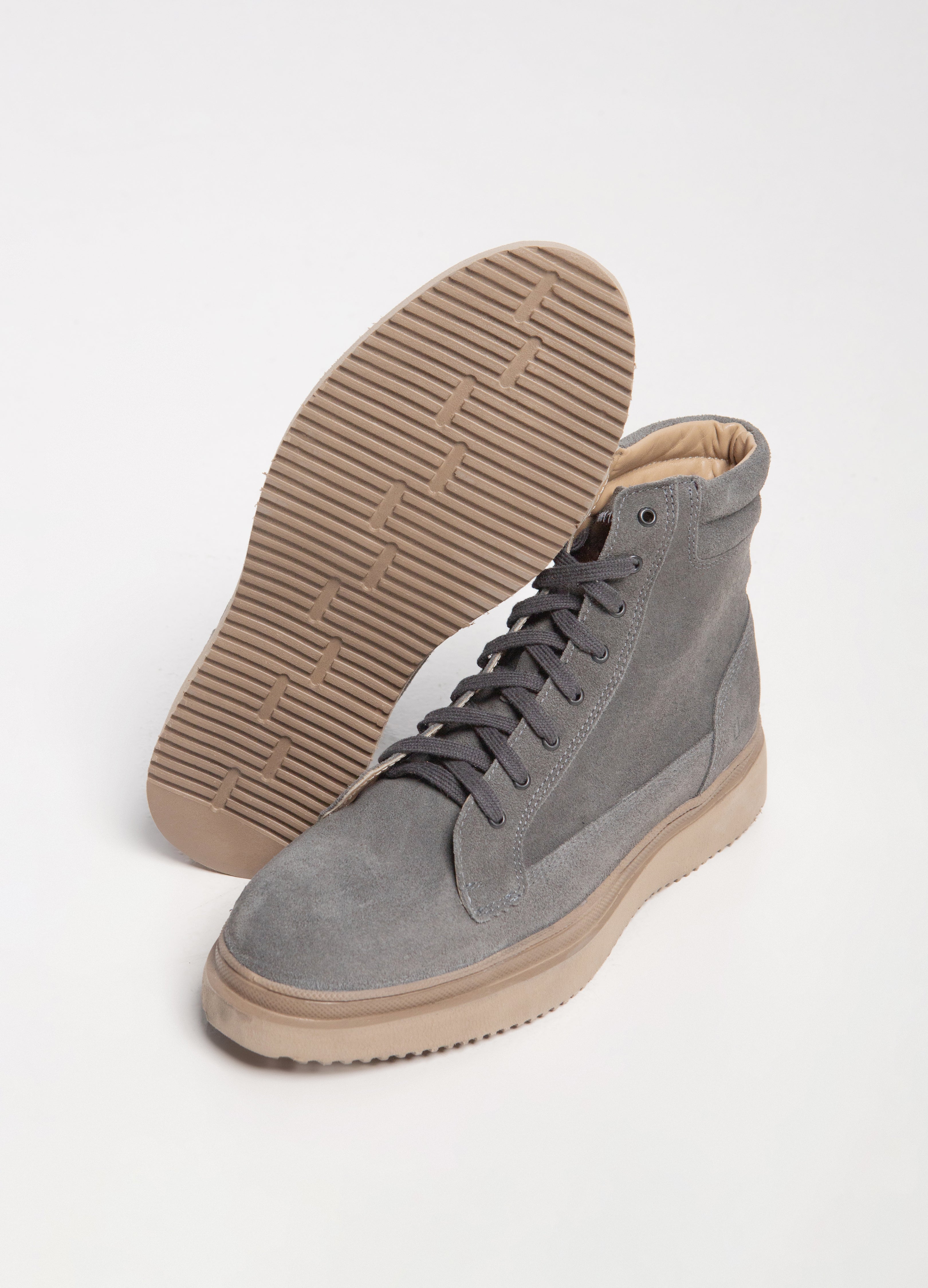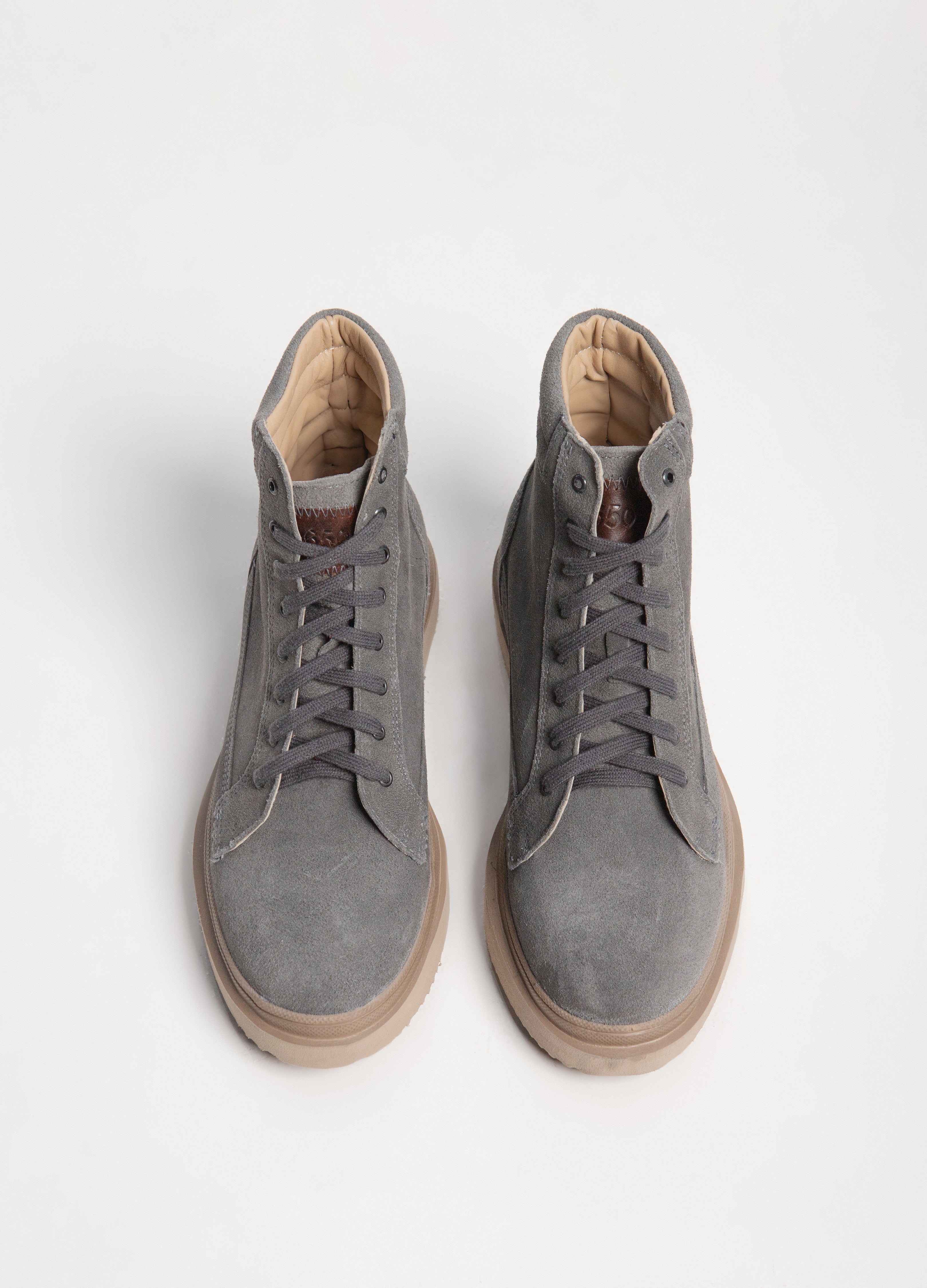 Boots made of grey cowhide with a suede finish and an ultra-light sole.