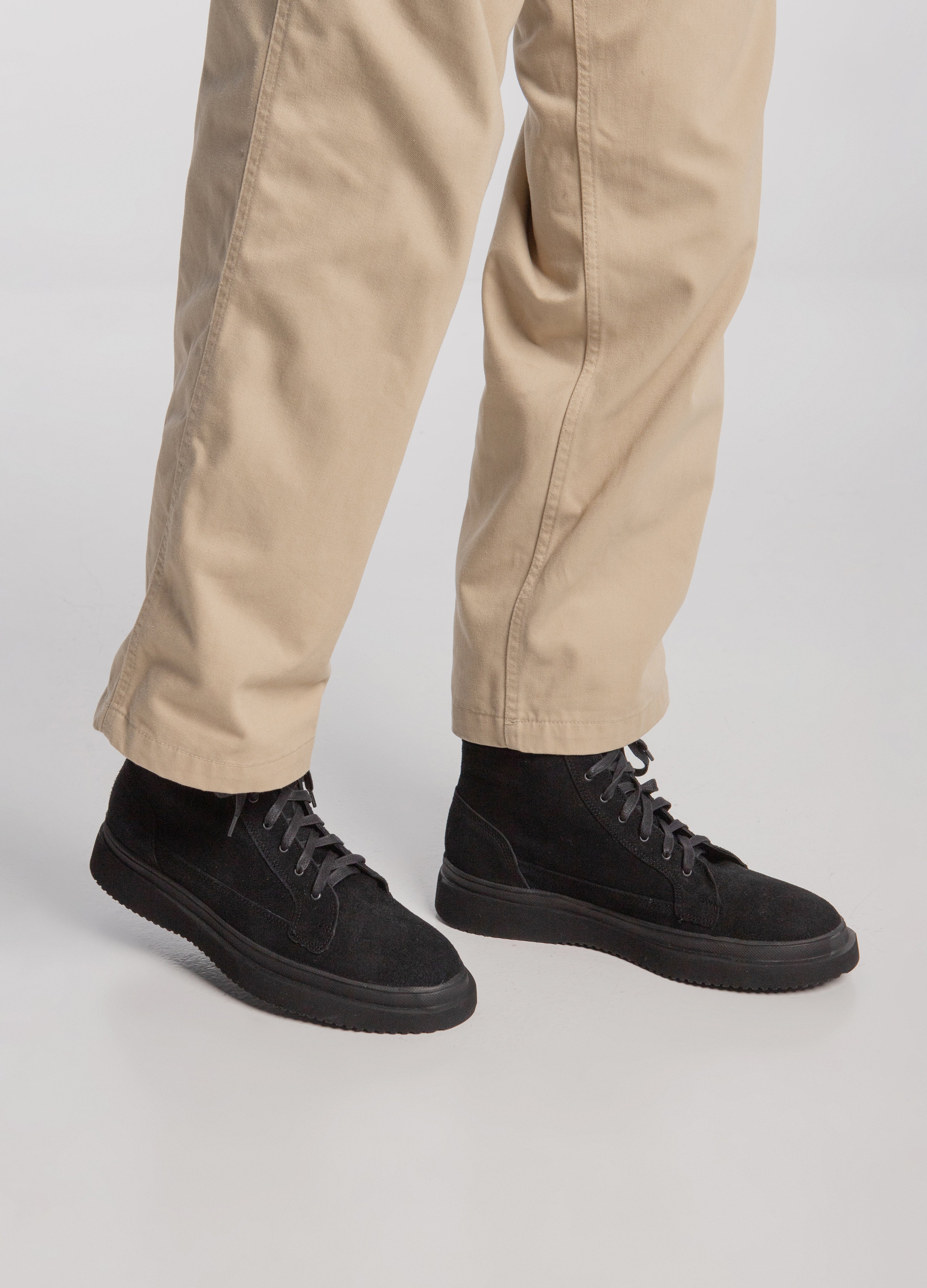 Boots made of black cowhide with a suede finish and an ultra-light sole.