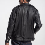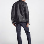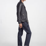 textile lining, laser-engraved internal leather labels, adjustable leather belt, metal buttons, rivets and buckles.