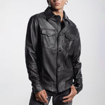 Black western shirt made of top-quality pelibuey sheepskin.