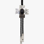 Fabricado con una estructura metálica pulida que enmarca una piedra negra decorativa de acabado brillante. La cuerda trenzada está confeccionada en 100% cuero, seleccionado por su flexibilidad y resistencia, permitiendo un ajuste cómodo y seguro gracias a su sistema corredizo. Las puntas metálicas en los extremos de la cuerda no solo aportan un toque de estilo, sino que también refuerzan la durabilidad del accesorio.