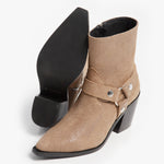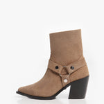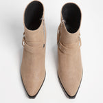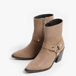 Chelsea boot made of sand-colored suede leather, with side closure, harness with headband and ring and the emblematic Thoro plaque on the sole.
