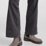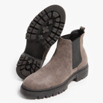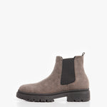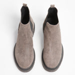 Chelsea boots made of grey cowhide with a suede finish, thick sole and side elastics.