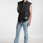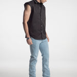 Camisa sin mangas estilo trailero en color negro con botones a presión estilo perla.