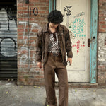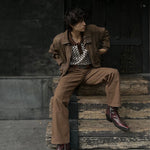 El Pantalón Carpintero Café es una pieza esencial que combina resistencia y un look de trabajo clásico. Está confeccionado en una lona o denim de color café tabaco, dándole un tono neutro y muy versátil. Su diseño carpinteroincluye bolsillos tipo parche y paneles delanteros reforzados. El corte es holgado y cómodo, siendo ideal para quienes buscan una prenda auténtica y robusta para el uso diario.