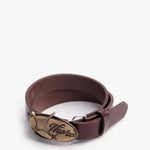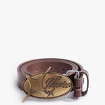 La protagonista es su imponente hebilla ovalada de metal envejecido en tono bronce, diseñada con la leyenda "Thoro" y grabados decorativos de dos estrellas en bajo relieve que evocan los destellos de una noche en Sin City.