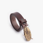 Confeccionado 100% piel, este cinturón luce un tono camel natural que se adapta a cualquier estilo, aportando calidez y autenticidad. Su acabado mate resalta la veta única de la piel, haciendo de cada pieza algo irrepetible.