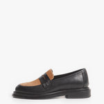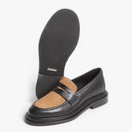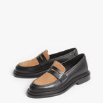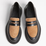 El Loafer Salvaje muestra el contraste entre el brillo de Las Vegas y la esencia del desierto. Este zapato es una jugada inteligente en estilo, uniendo hábilmente dos pieles: una base de piel negra lisa para una apariencia clásica, y un panel de pelaje 100% natural en tono caramelo que aporta una textura rica y natural. Este diseño de doble material se asienta sobre una suela gruesa que garantiza una pisada sólida y un toque moderno.
