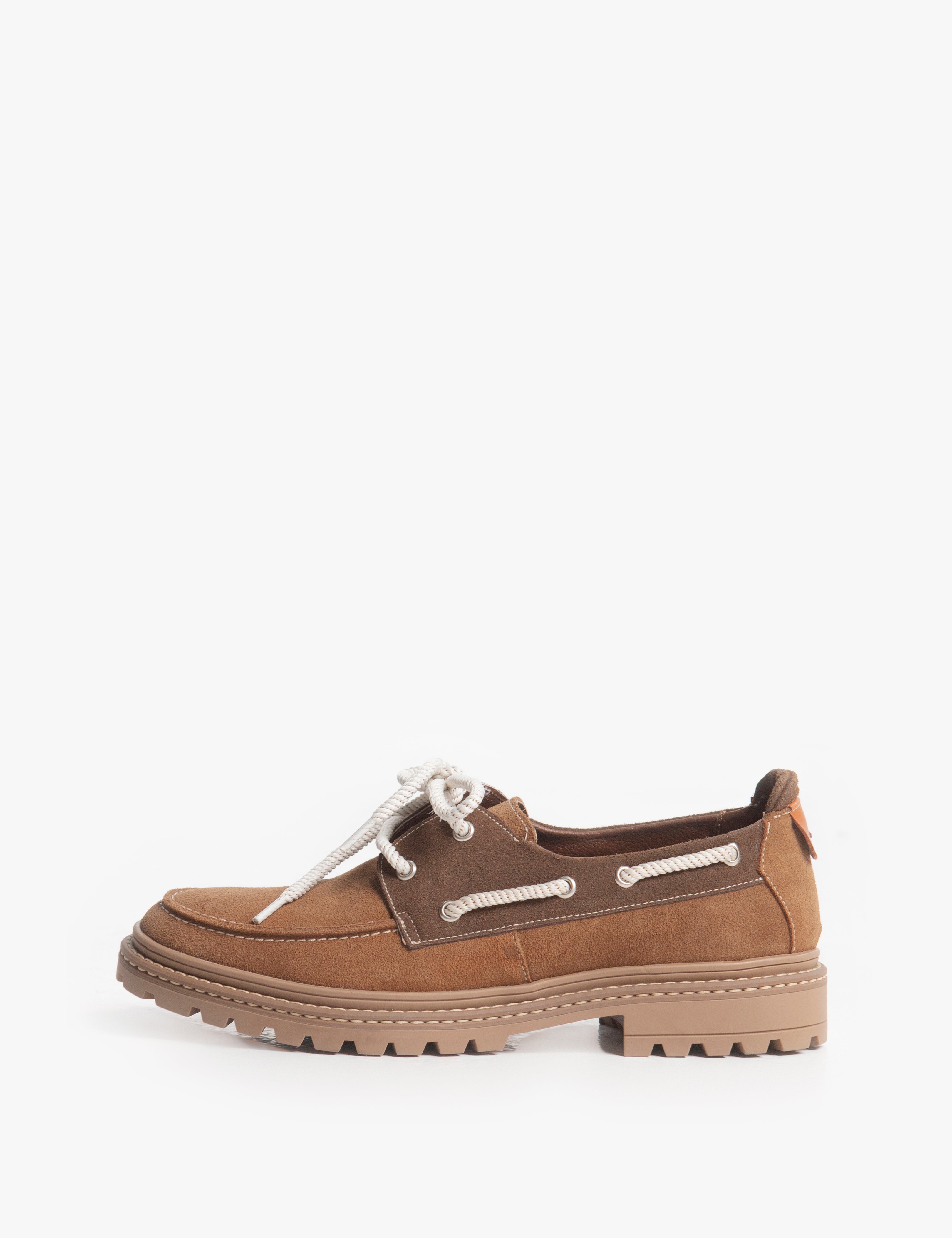 El Marinero Chunky Azul le da un giro fresco al clásico zapato náutico, con una base robusta y moderna. Está confeccionado en piel gamuza que combina un vibrante color azul con detalles en tono café, resaltando los cordones marineros blancos. Su característica clave es la suela chunky, gruesa y con tracción, que le proporciona un look actual y una gran comodidad. Este calzado fusiona la tradición relajada con un estilo utilitario, ideal para un look casual y distintivo.