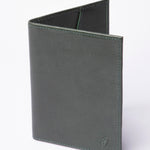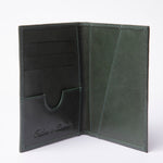 Portapasaporte fabricado en piel color verde con varios compartimientos para distintos documentos