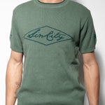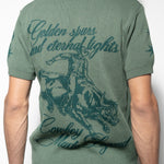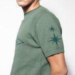 Playera estilo suéter tejido de lana en color verde con estampados.