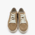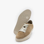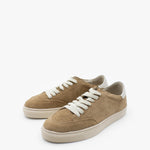 Sneakers made of camel-colored cowhide with a suede finish, bone-colored sole and off-white leather details.