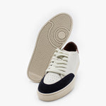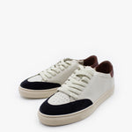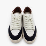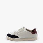 Sneakers made of off-white cowhide, bone-colored sole and navy blue and wine leather details.