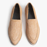 El Bella Salvaje es un Flat elegante que fusiona la comodidad con un toque exótico y lujoso. Está confeccionado con piel de pelaje 100% natural en un tono arena claro, que le da una textura inigualable y muy distintiva. Su diseño de punta afilada es sofisticado y se complementa con una suela delgada y elegante, ideal para quienes buscan una silueta estilizada