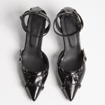 El zapato Kitten Black es un Stileto de tacón clásico con un giro moderno. Está confeccionado en piel charol color negro, que le da un acabado brillante y lujoso. El diseño destaca por su punta afilada.