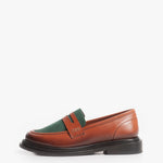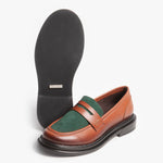 El Loafer Resort es un calzado diseñado para la comodidad y el estilo atemporal. Confeccionado en piel color cognac de acabado liso, este loafer destaca por su panel central de piel gamuza en un profundo color verde esmeralda. El contraste de materiales y tonos lo hace versátil, mientras que su suela de pista, robusta y con un tacón bajo, le da una base moderna y estable. Es el zapato perfecto para llevar un estilo refinado y cómodo en cualquier ambiente relajado.