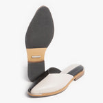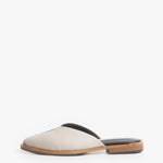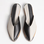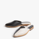 Mule flat bicolor negro con blanco fabricado en piel de res de alta calidad con suela antiderrapante.