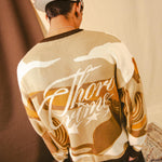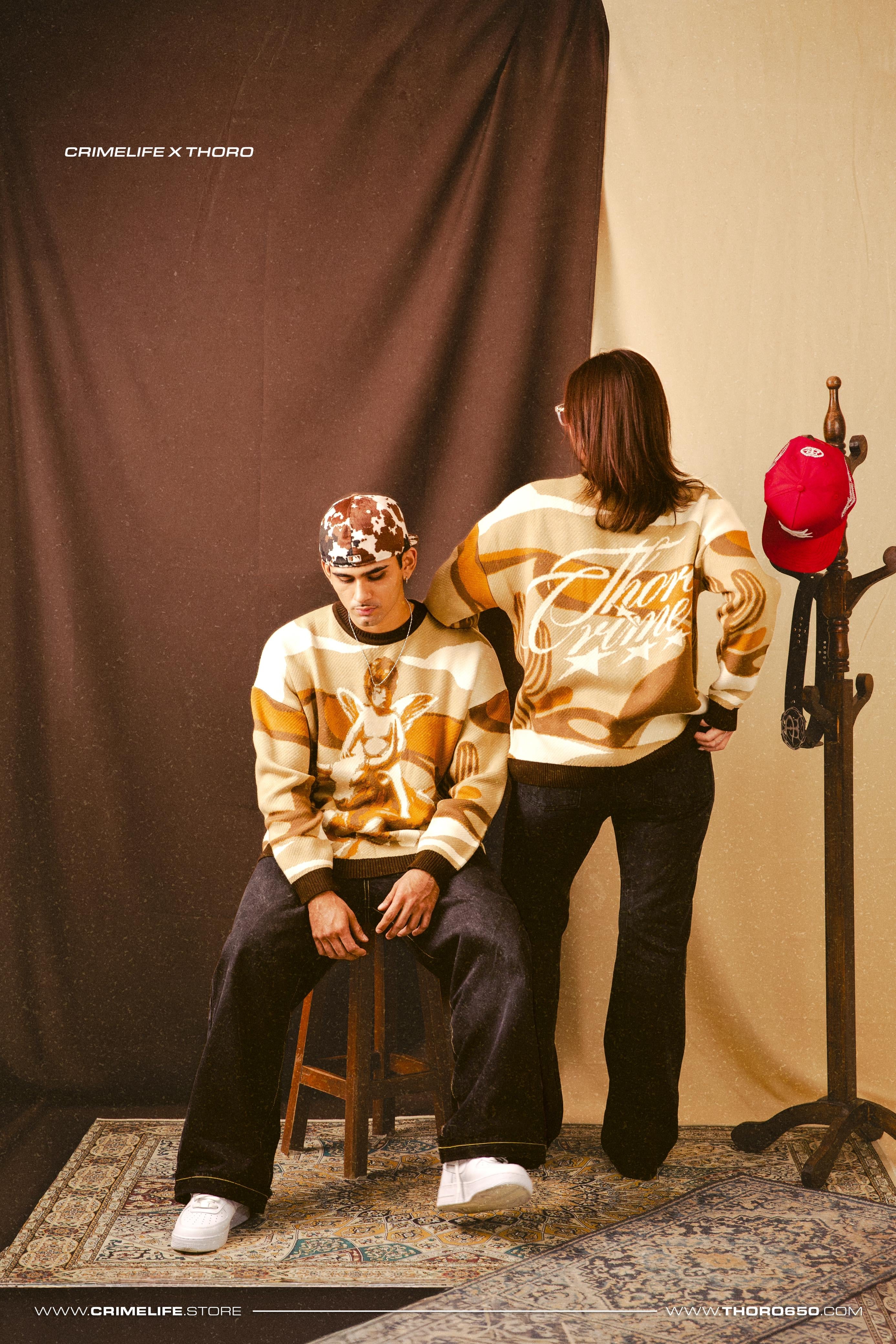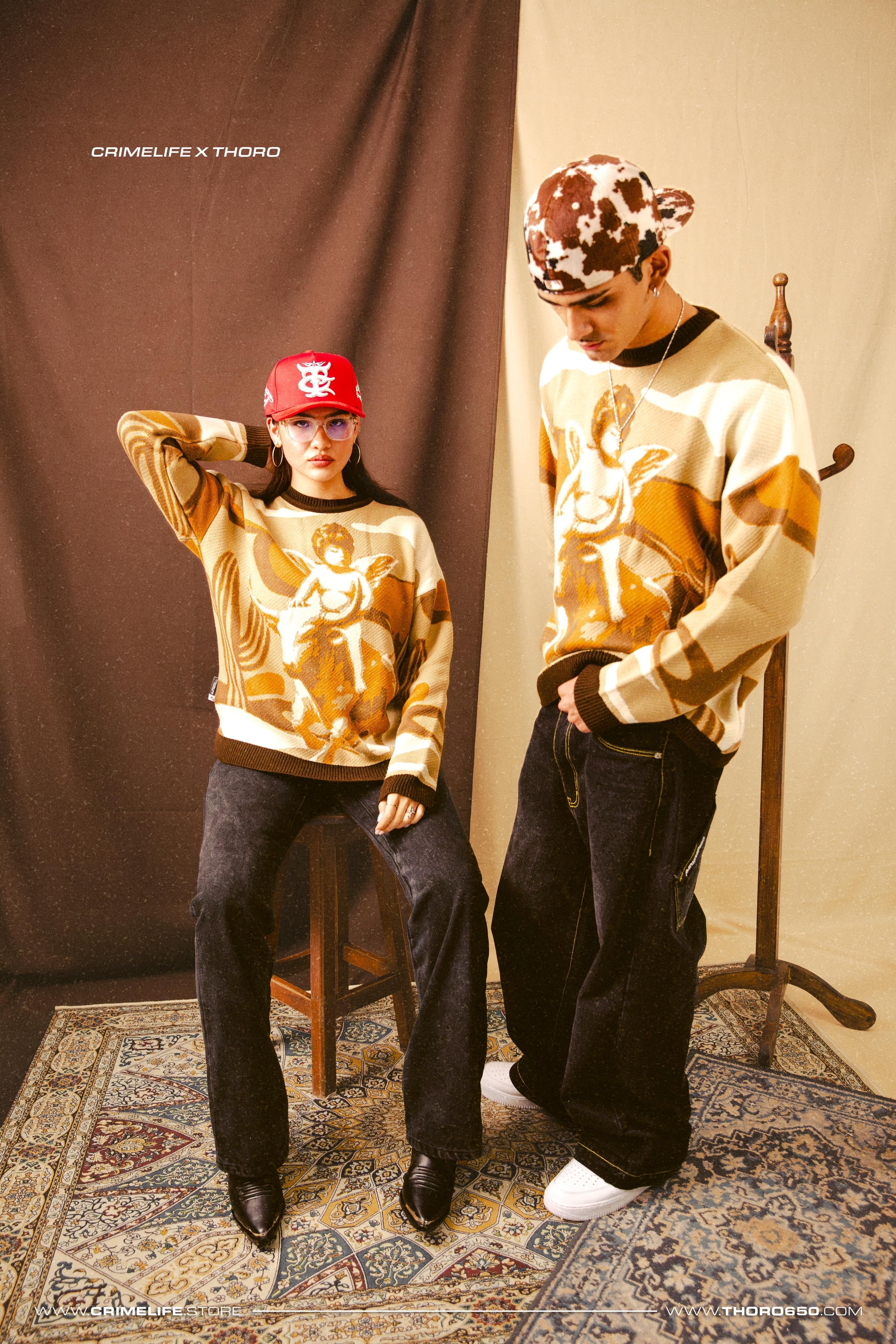 Un Sweater tejido que une los universos de ambas marcas de una forma tan natural que parece que estuvieras delirando, pero es real.