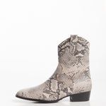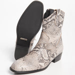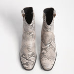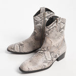 Botines tipo Chelsea fabricados en piel de res, con un diseño y acabado de cobra en color beige. Cuentan con cierre lateral plateado y la emblemática placa de Thoro 650 en la suela.