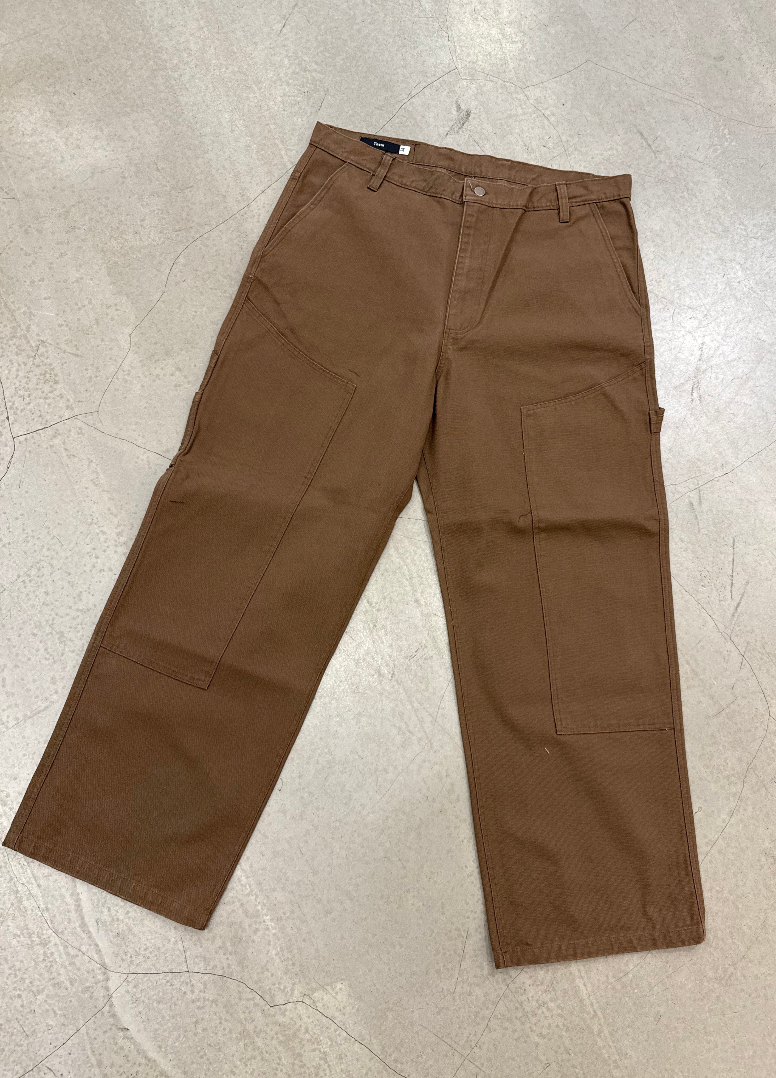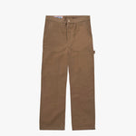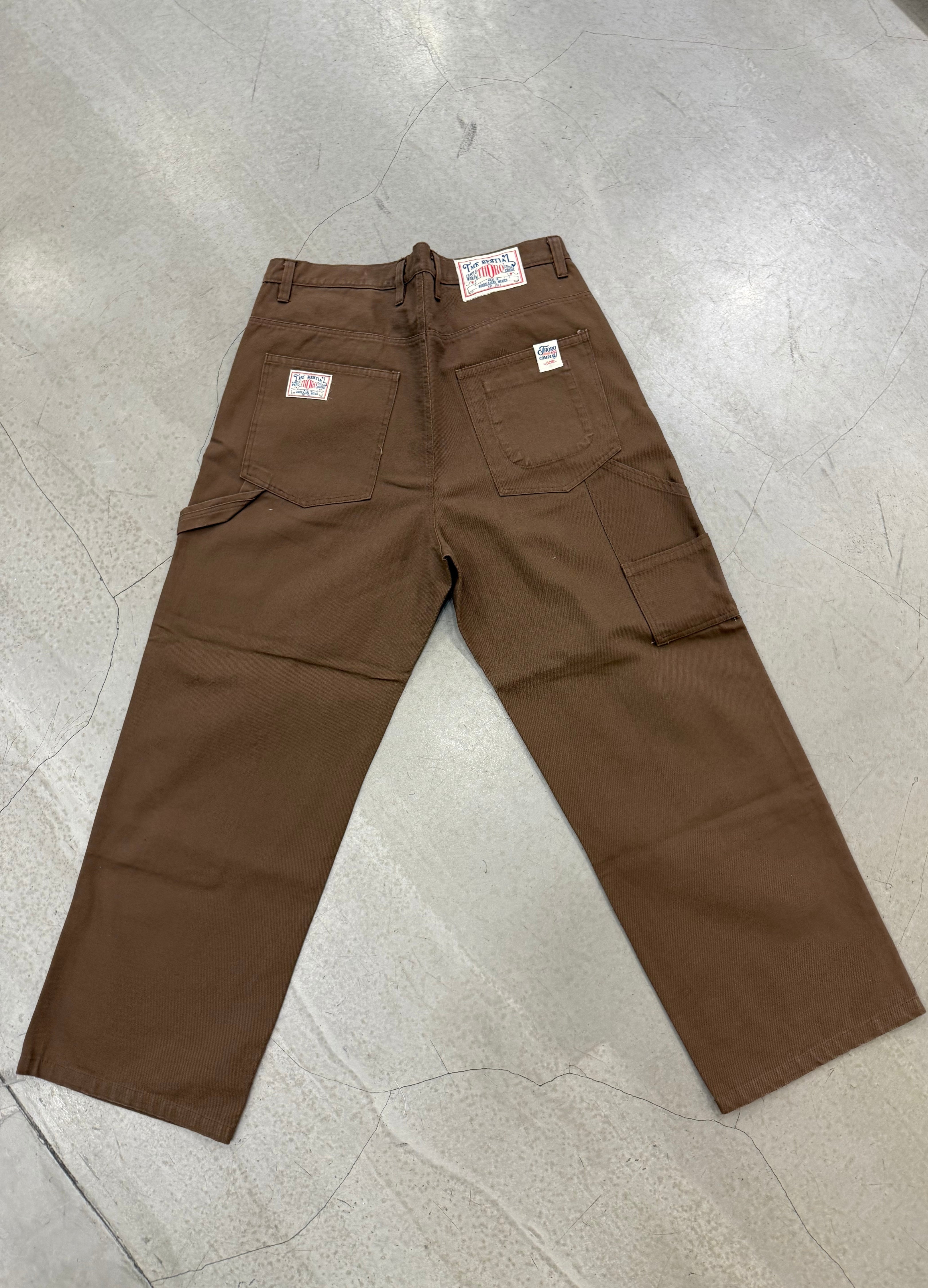 El Pantalón Carpintero Café es una pieza esencial que combina resistencia y un look de trabajo clásico. Está confeccionado en una lona o denim de color café tabaco, dándole un tono neutro y muy versátil. Su diseño carpinteroincluye bolsillos tipo parche y paneles delanteros reforzados. El corte es holgado y cómodo, siendo ideal para quienes buscan una prenda auténtica y robusta para el uso diario.