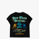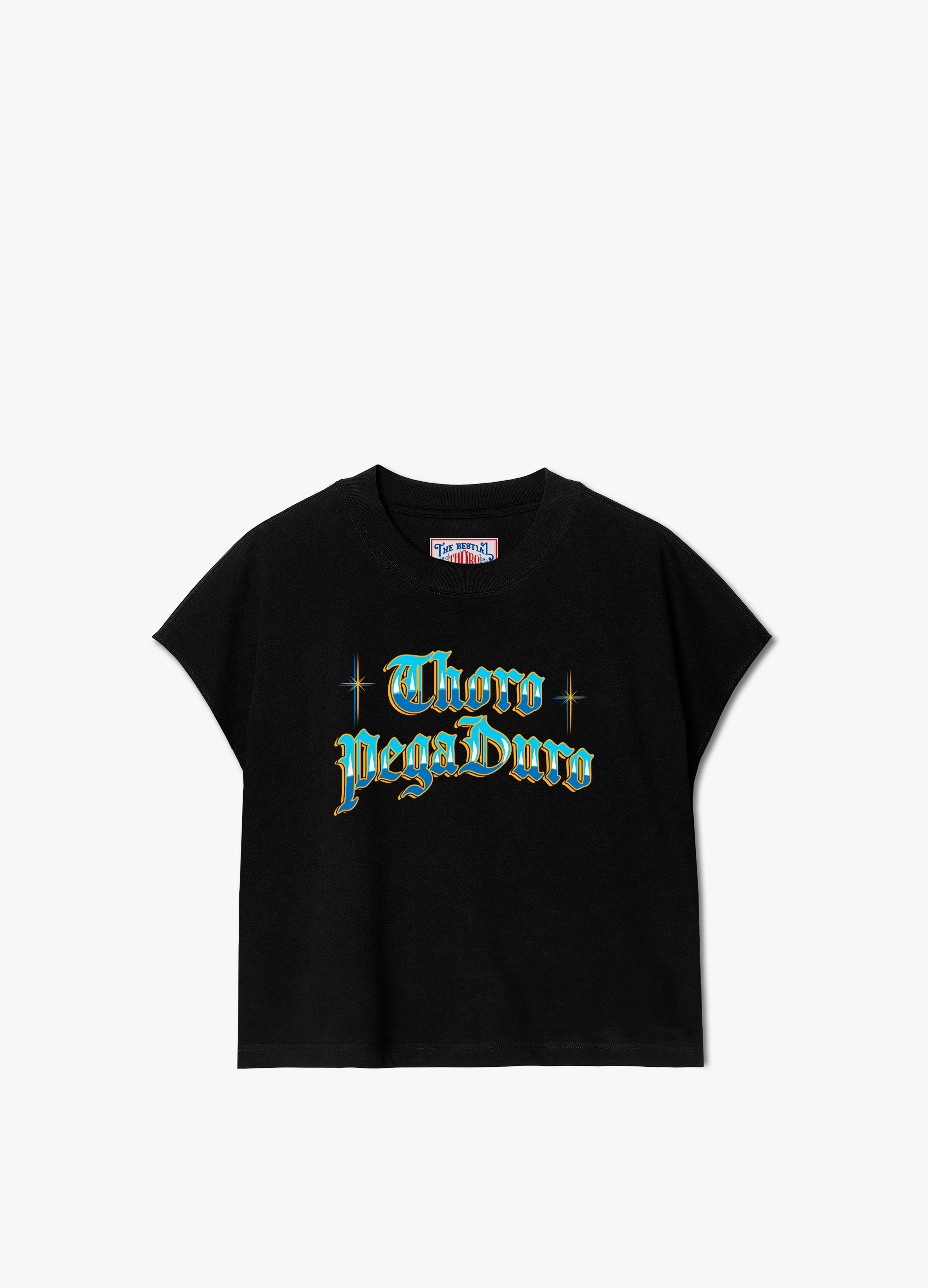 La playera Puro Thoro Mexicano es una pieza audaz de la colaboración Thoro x PegaDuro que rinde tributo a la identidad y la bravura de los barrios de México. Se trata de una prenda sin mangas confeccionada en algodón negro, diseñada para ofrecer máxima libertad de movimiento y frescura. Destaca por su imponente gráfico central en tipografía gótica blanca con acentos rojos, acompañado de la leyenda "Los Bravos Del Barrio".